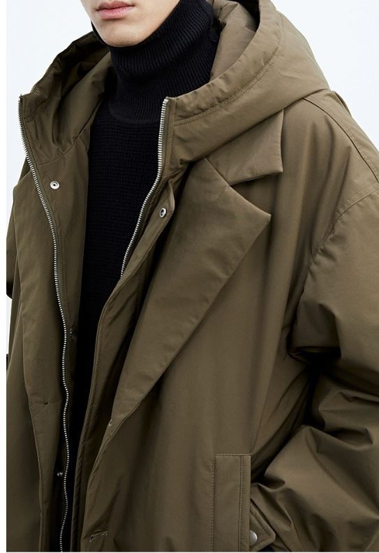 معطف رجالي جديد على الطراز الكوري بغطاء رأس من قطعتين
