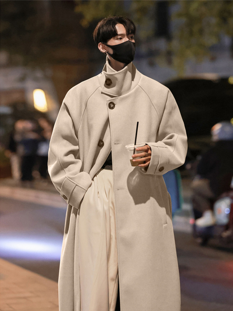 معطف رجالي شتوي من الصوف فوق الركبة على الطراز الكوري