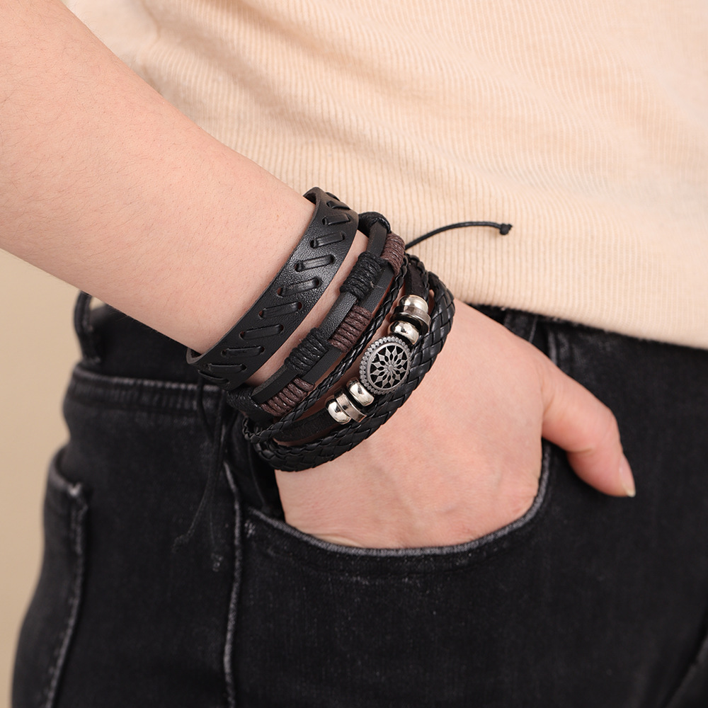 سوار جلدي مصنوع يدويً مكونة من أربع قطع