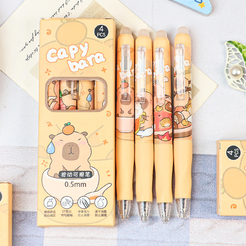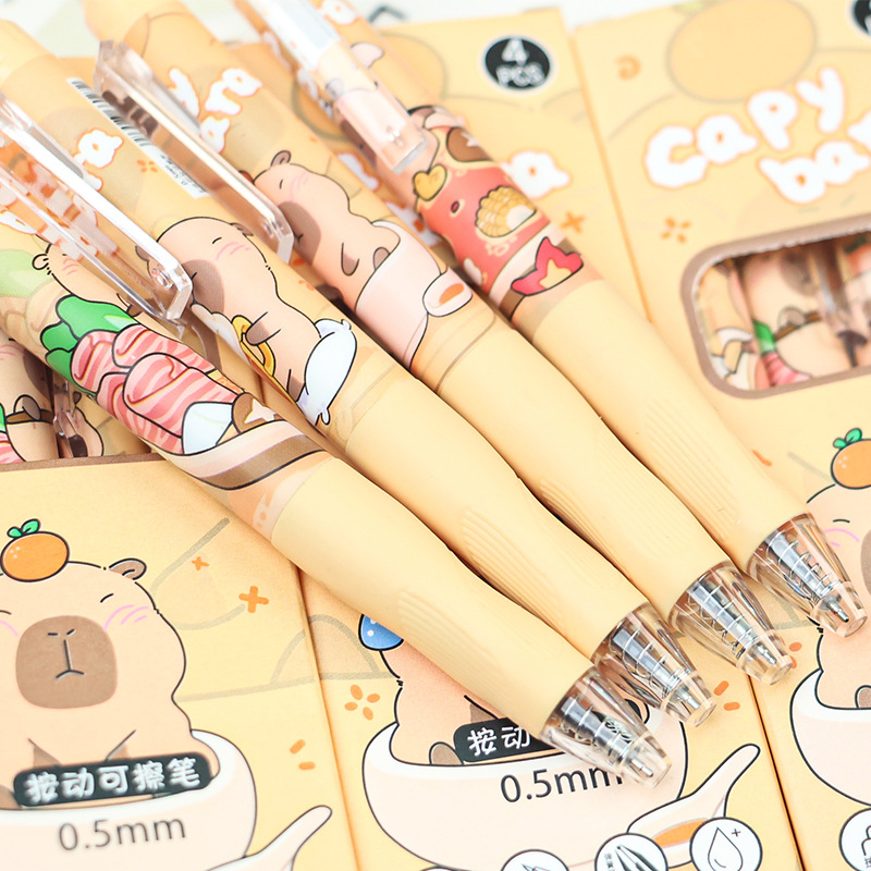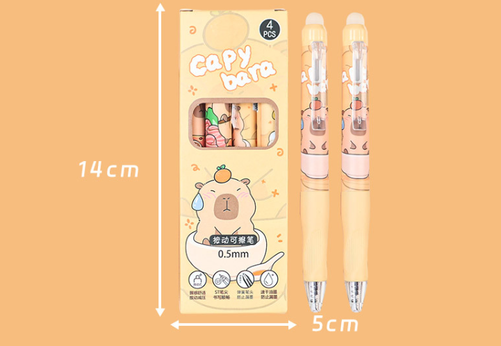 | وصف | مجموعة من الأقلام المكونة من 4 أقلام - أقلام بخط أسود - أقلام بطبعة كابيبارا اللطيف |