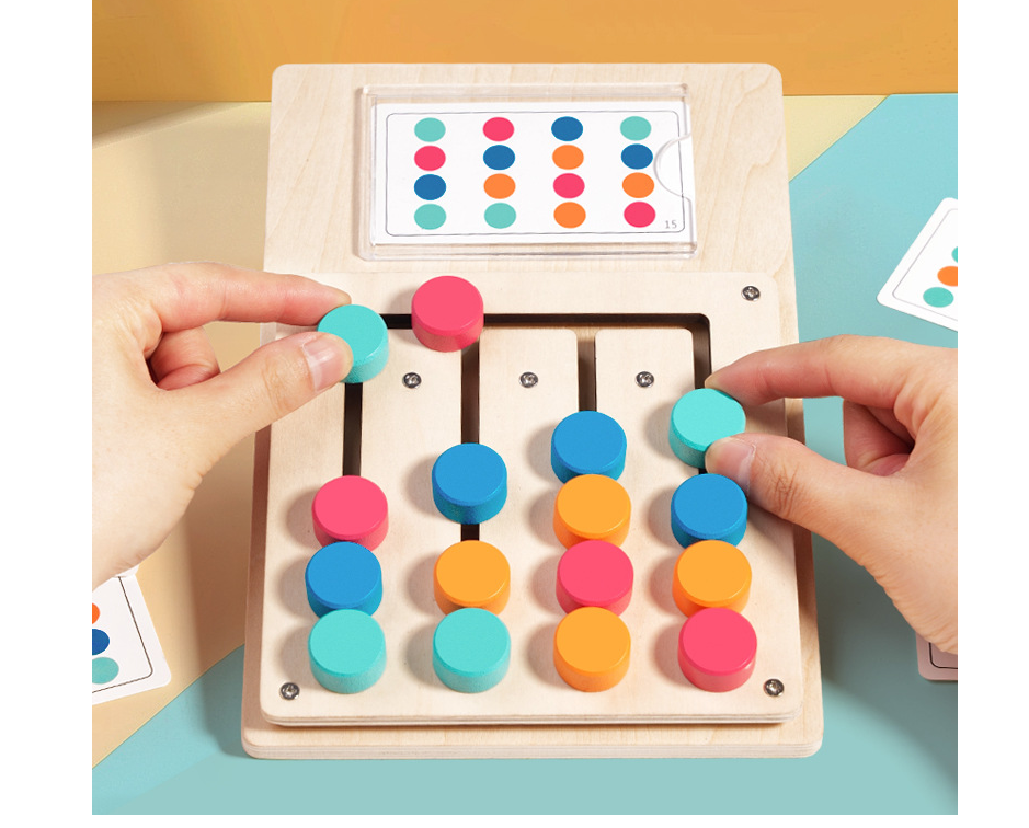 بطاقات ألغاز خشبية بأربعة ألوان ، لعبة لممارسة القدرة على التفكير
