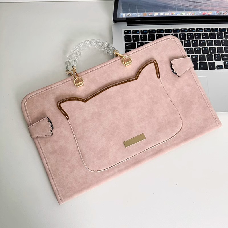 حقيبة لابتوب جلدية بطابع أنثوي أنيق وتصميم قطة لطيفه