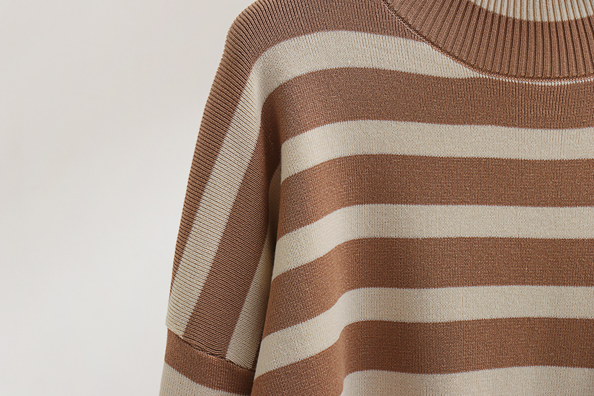 طقم نسائي من قطعتين بتفاصيل مخططة على الصدر