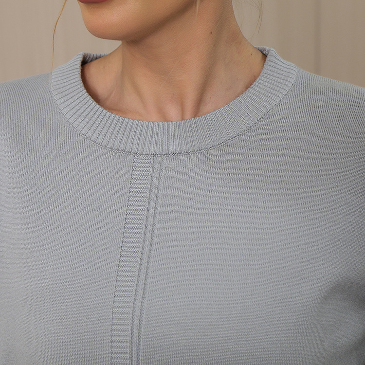 طقم نسائي بتصميم موحد اللون يضم بلوزة مريحة الأكمام وبنطال طويل واسع القدم