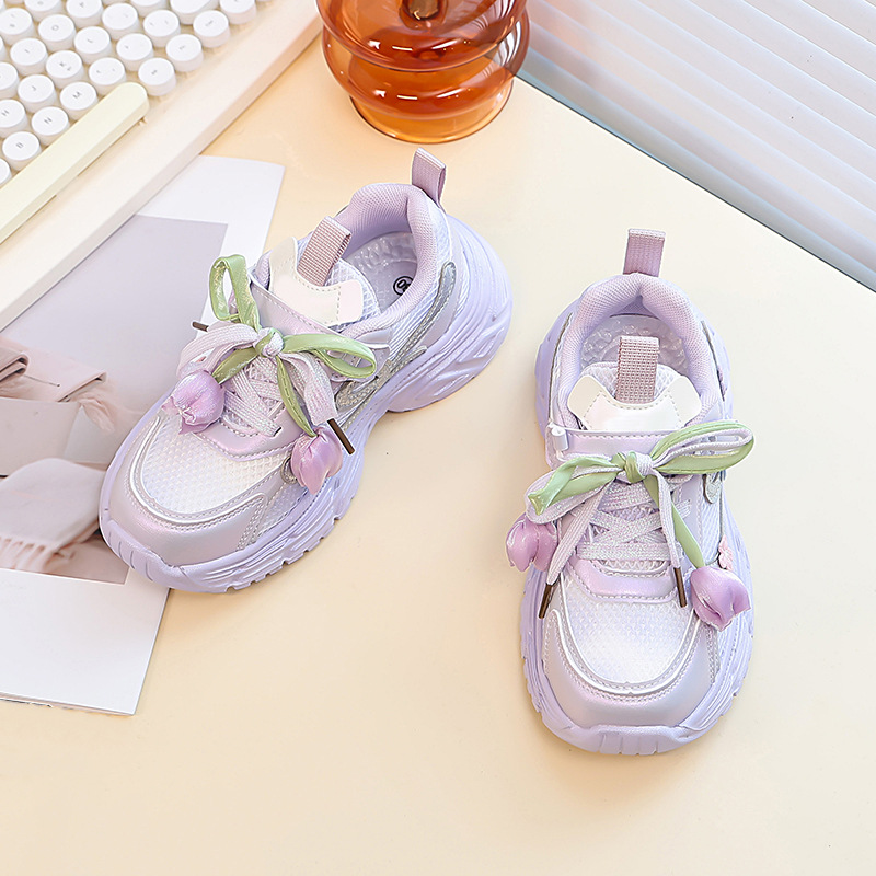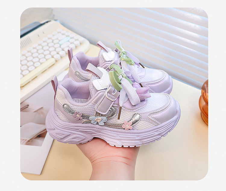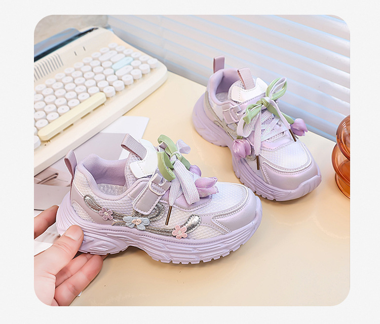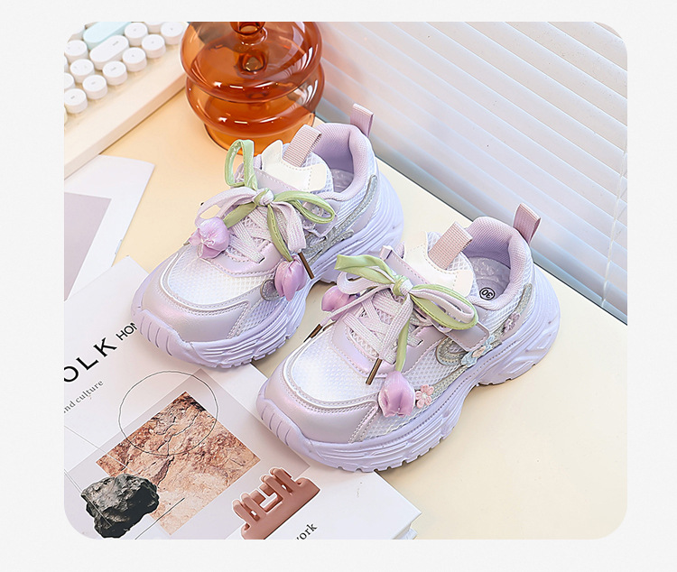 حذاء رياضي جلدي شبكي برباط من الزهور للفتيات