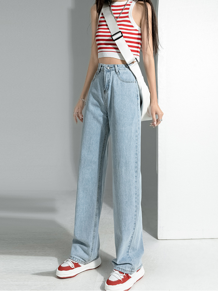 بنطلون جينز نسائي ضيق واسع الساق بخصر نحيف