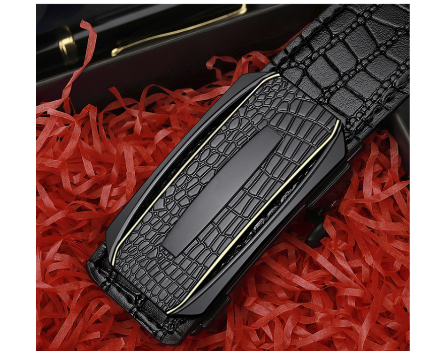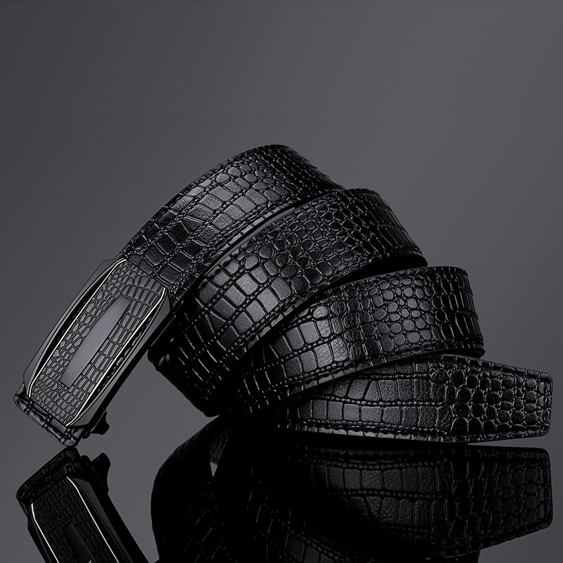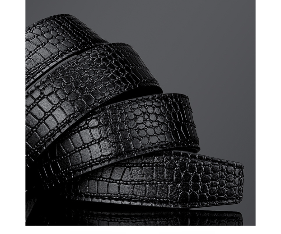 حزام جلدي رجالي بإبزيم أوتوماتيكي وبنقشة تمساح