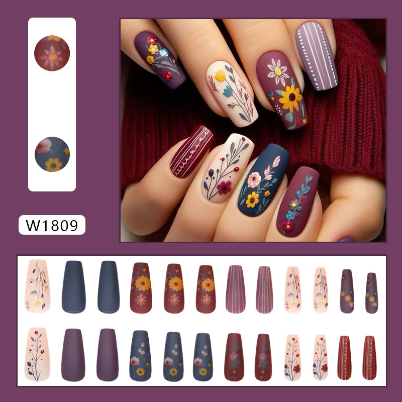 وصف | أظافر صناعية عالية الجودة بخامات آمنة وألوان متنوعة - أظافر تمنحك لمسة جمالية فورية مع ثبات مثالي وسهولة في الاستخدام - أظافر صناعية قابلة للارتداء بألوان زاهية وخطوط زهور صغيرة |