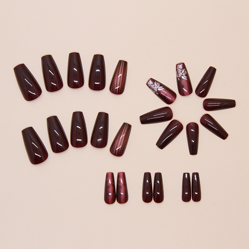 وصف | أظافر صناعية عالية الجودة بخامات آمنة - أظافر تمنحك لمسة جمالية فورية مع ثبات مثالي وسهولة في الاستخدام - أظافر صناعية قابلة للارتداء بلون أحمر داكن كلاسيكي |