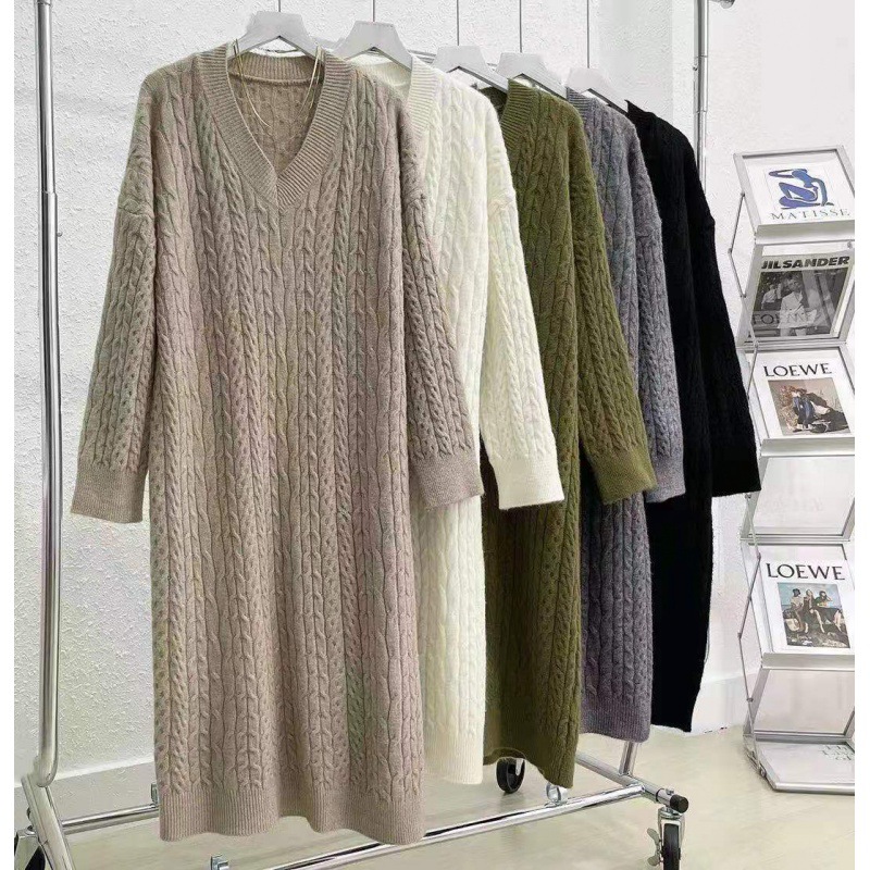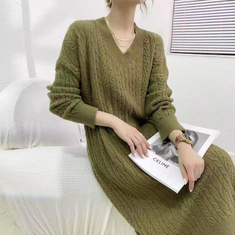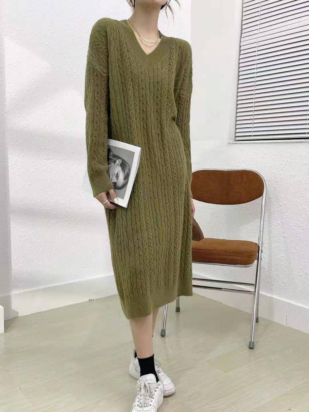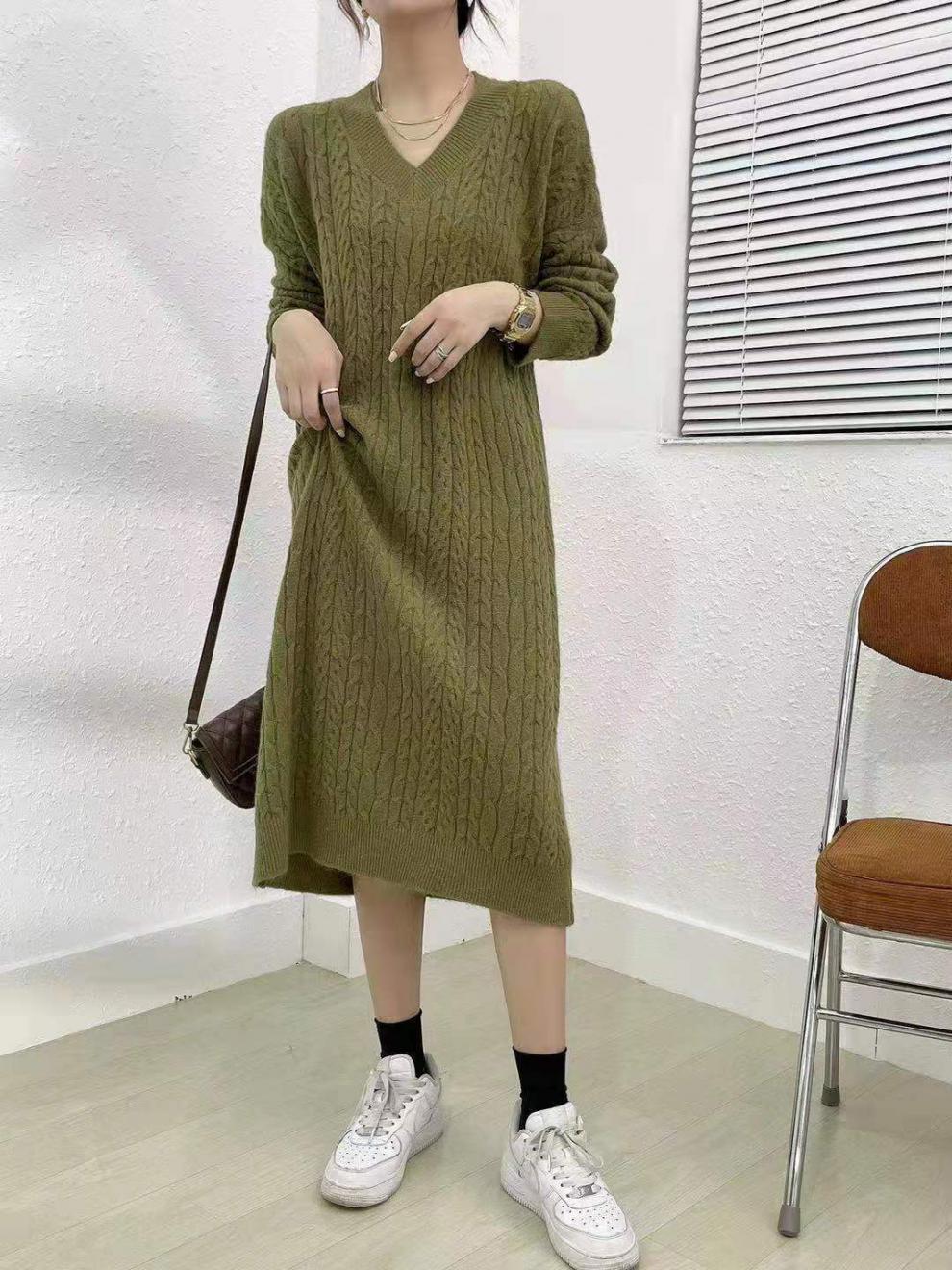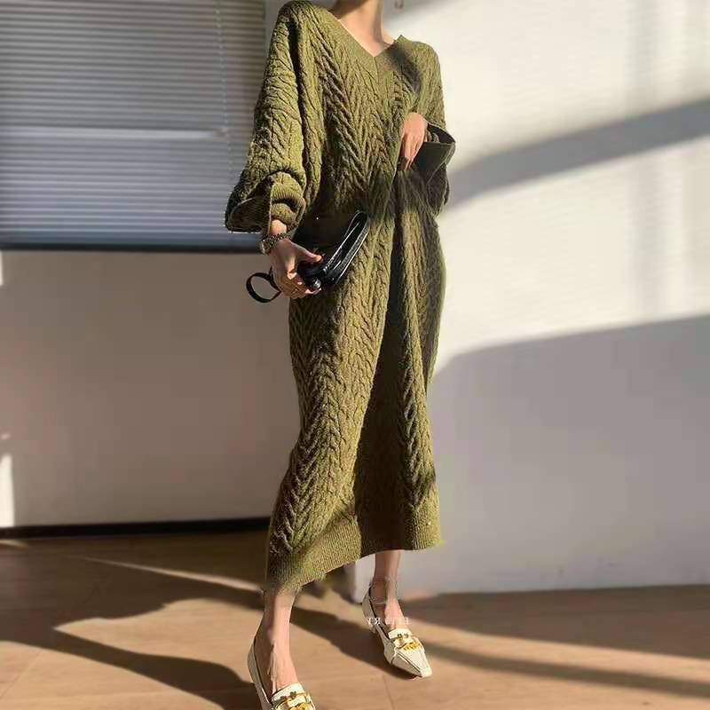 فستان شتوي سميك بأكمام طويلة وياقة عالية للسيدات