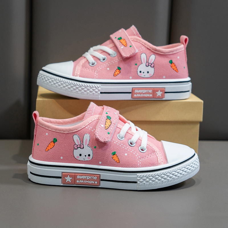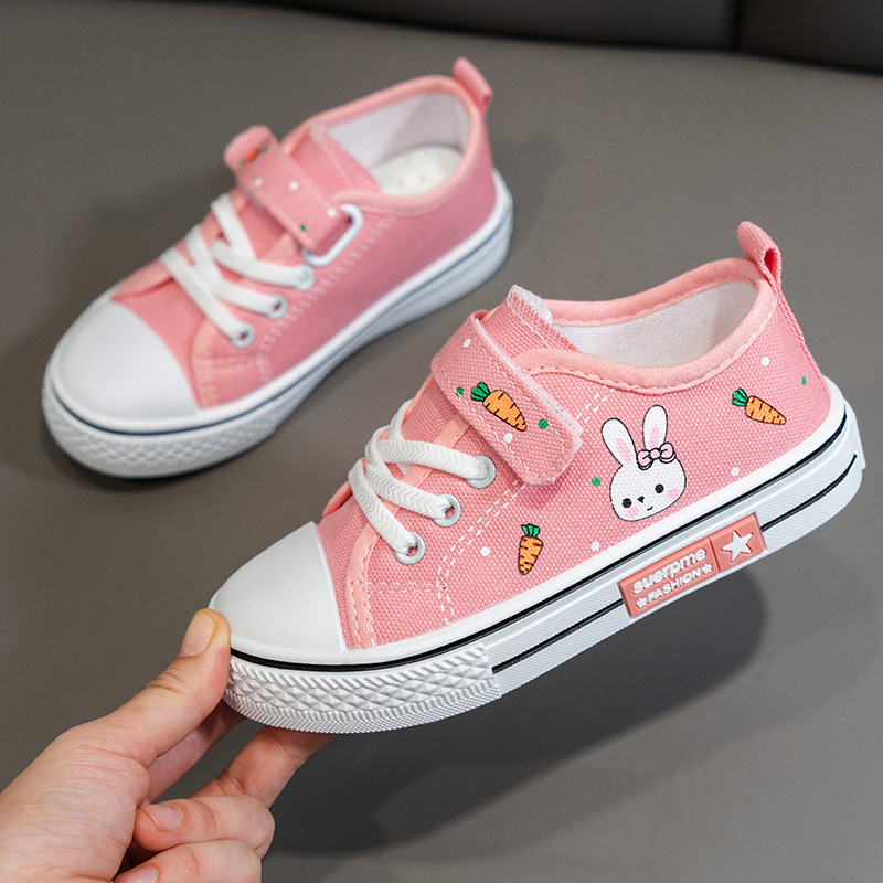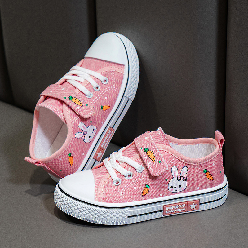 حذاء رياضي برباط ولاصق أمامي وبطبعات كرتونية للفتيات