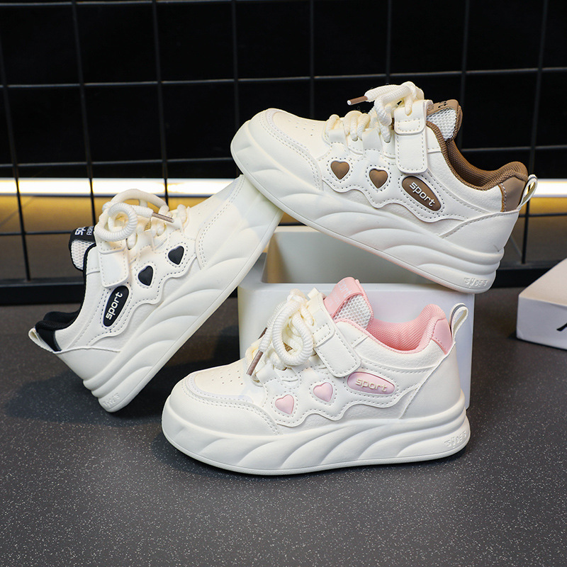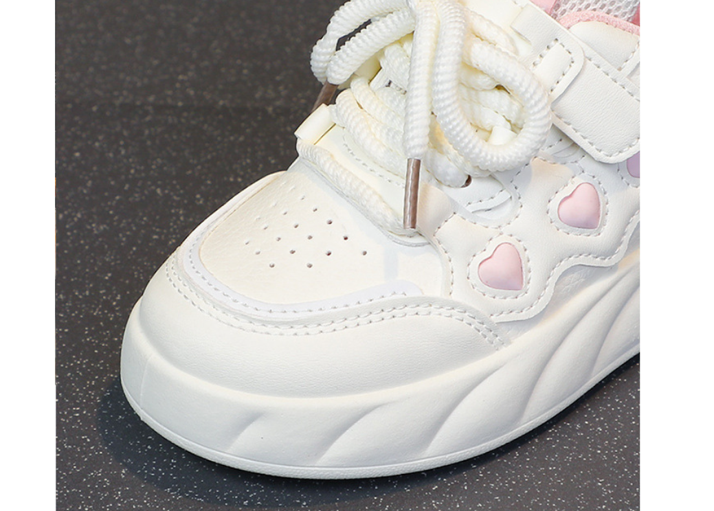 حذاء رياضي أبيض بنعل سميك وخيوط أمامية للفتيات
