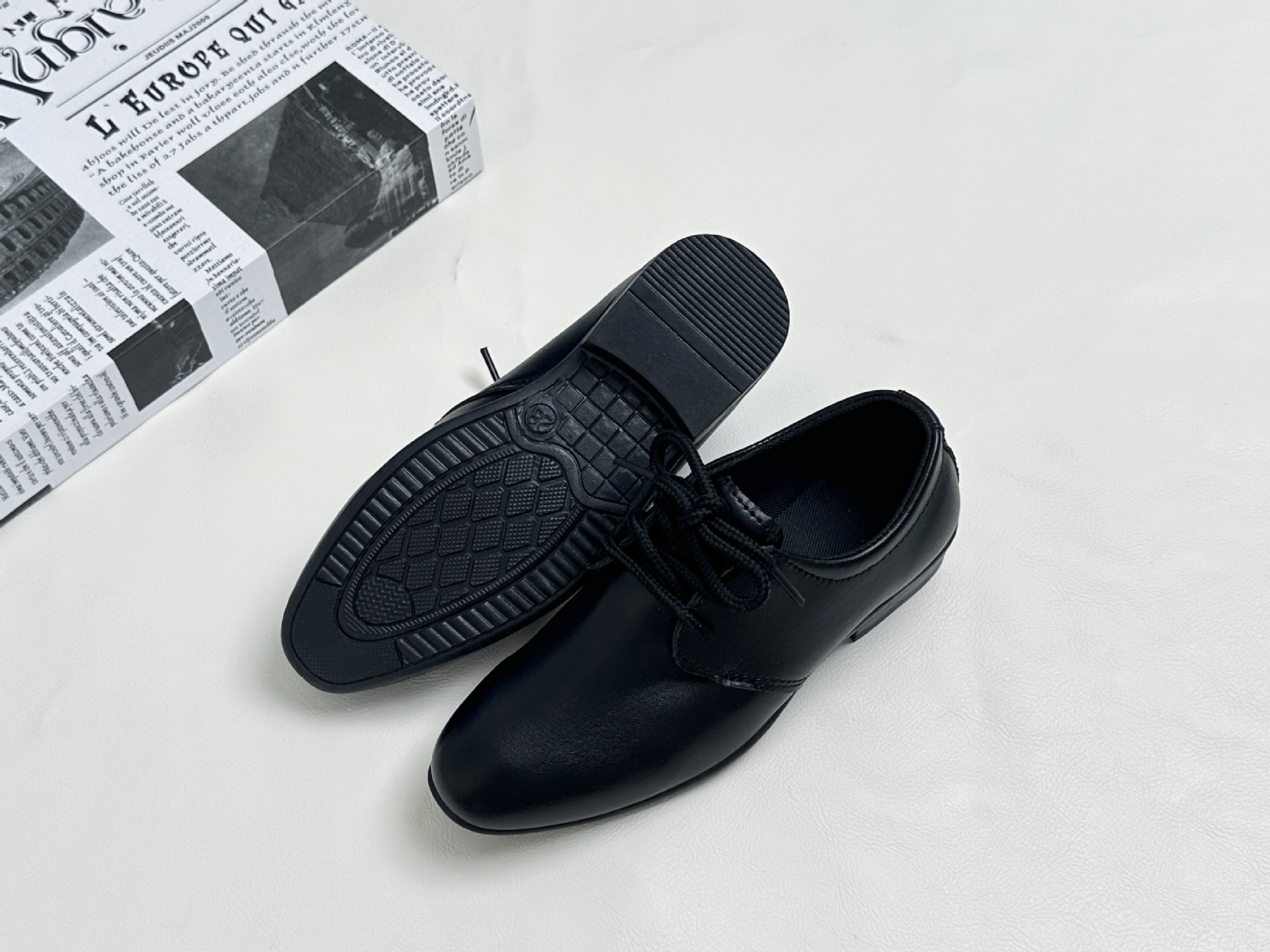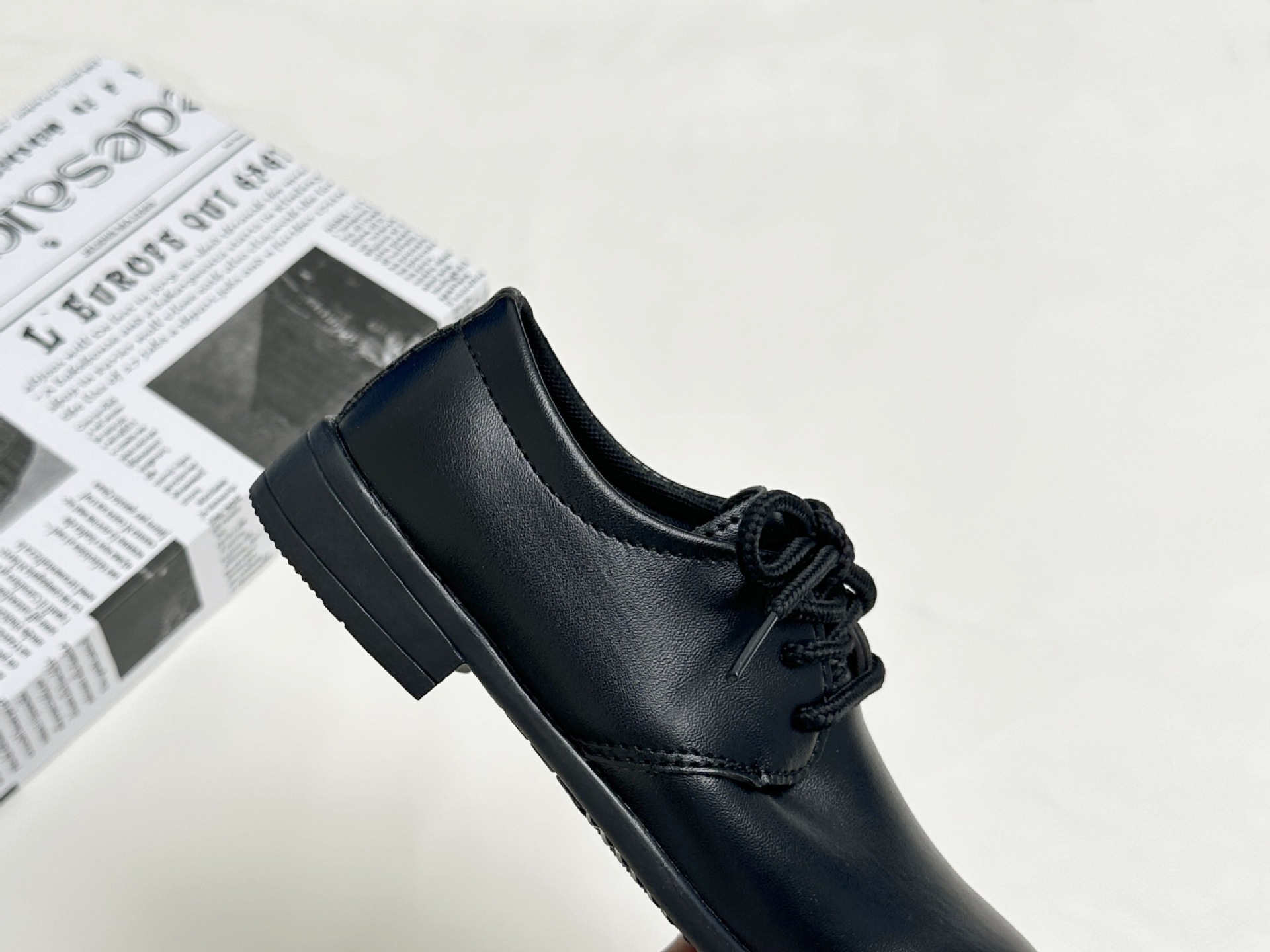 حذاء جلدي باللون الأسود بمقدمة مدببة ونعل ناعم للأولاد
