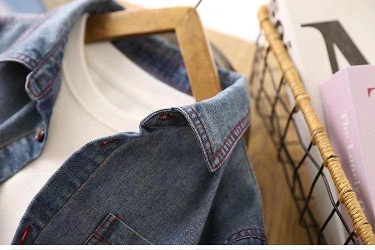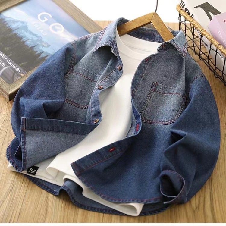 سترة جينز بأزرار أمامية وياقة مقلوبة للأطفال الأولاد