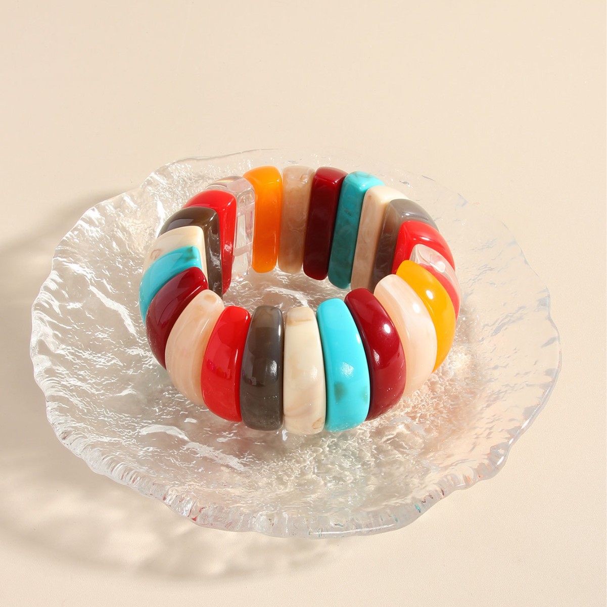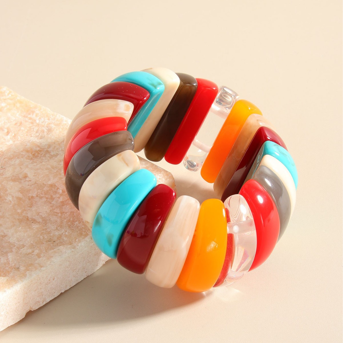 سوارة يد مخططة بألوان متعددة من الراتنج اللامع للسيدات