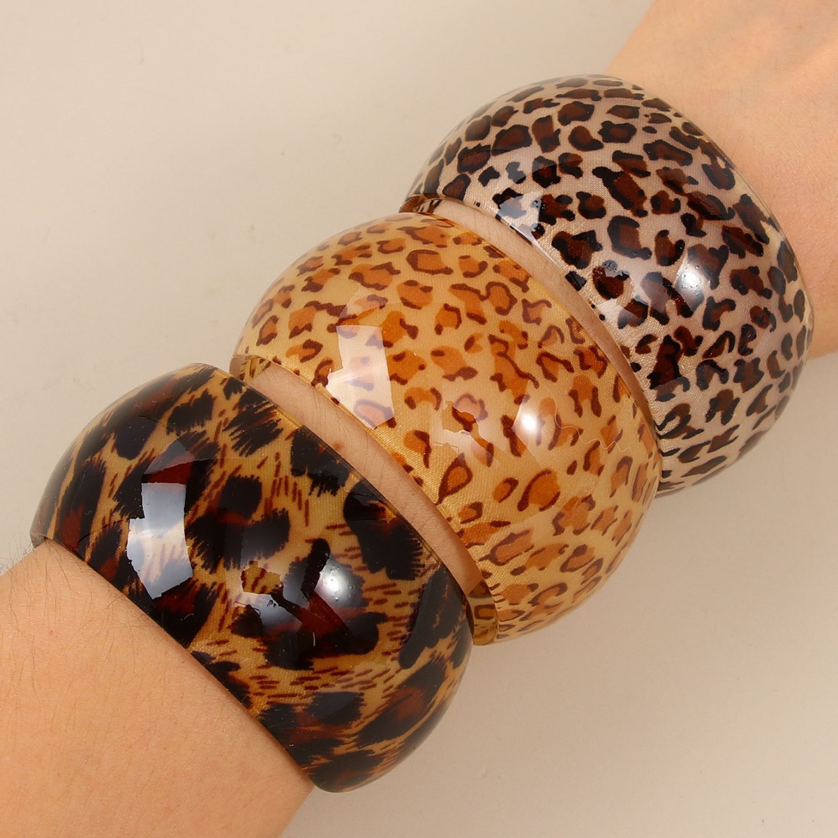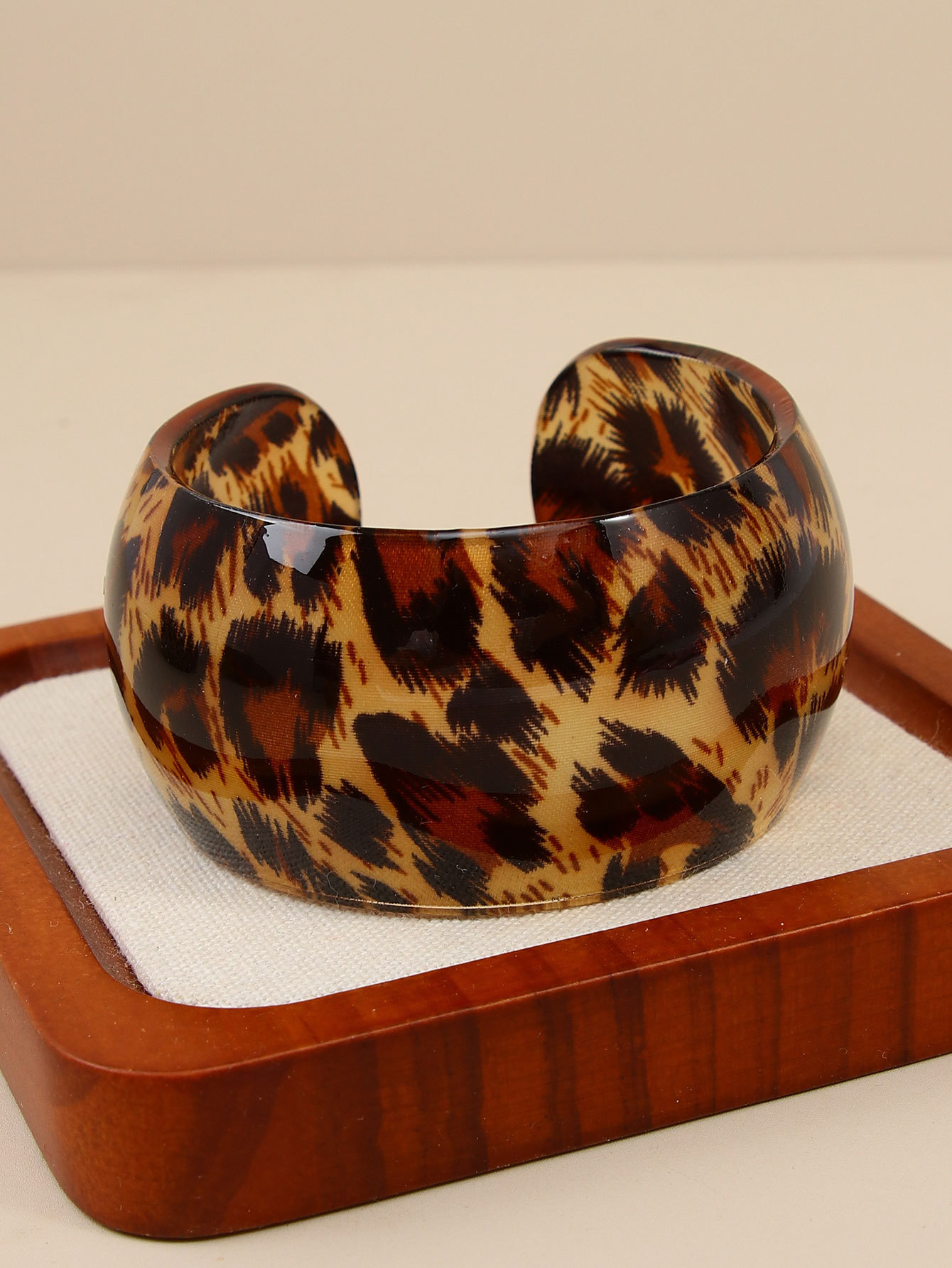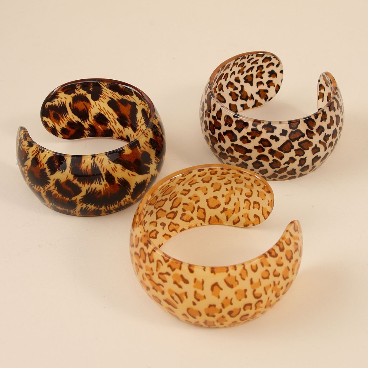 سوار عريض ومفتوح بطبعة جلد الفهد عصري وانيق للنساء