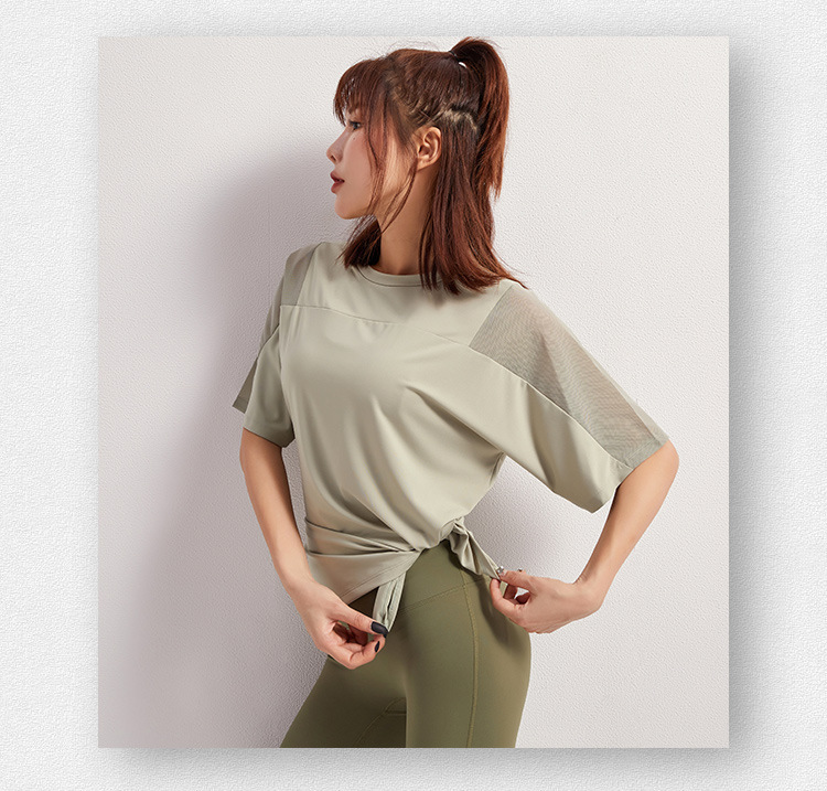 تي شيرت فضفاض بأكمام قصيرة من القماش الشبكي قابل للتنفيس وسريع الجفاف للسيدات