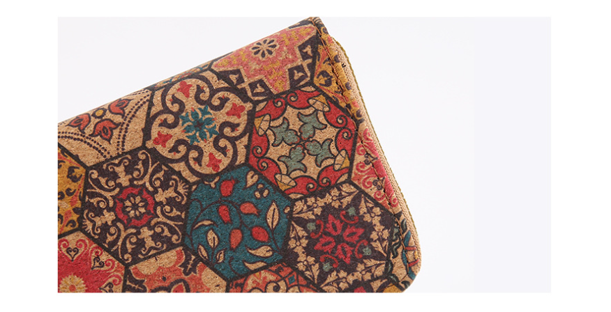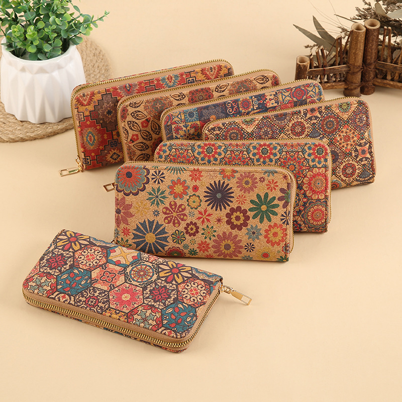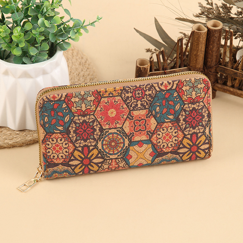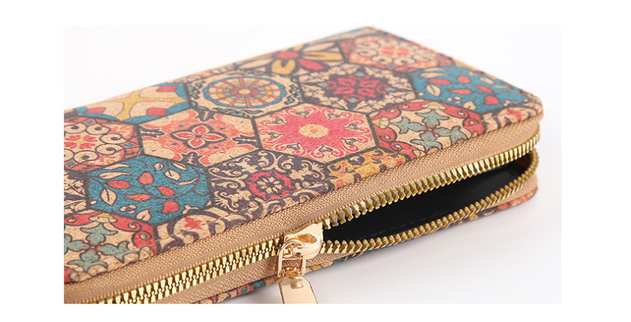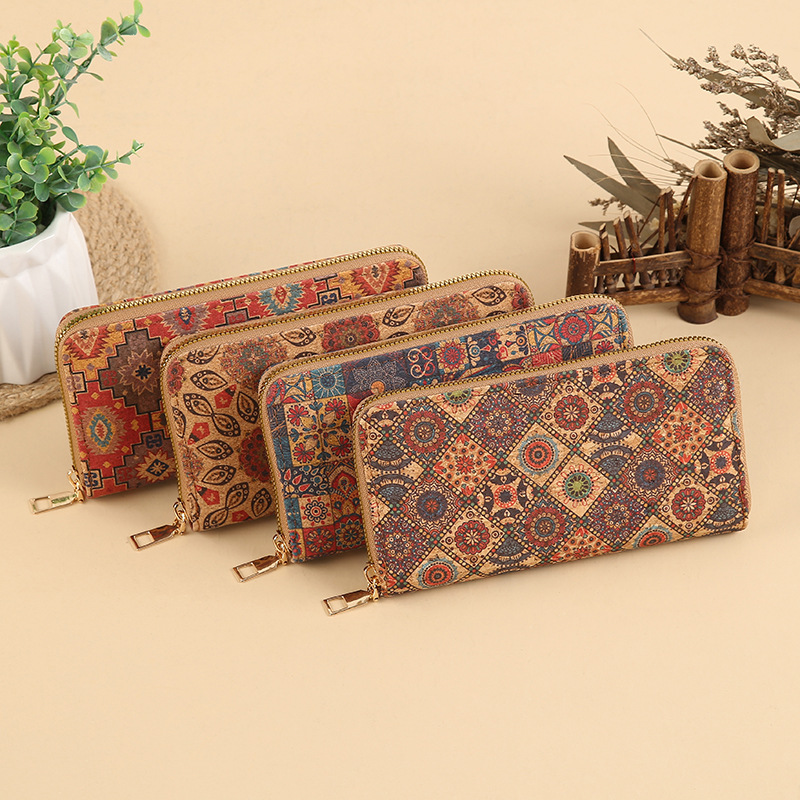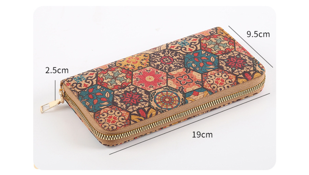 محفظة نسائية طويلة بسحاب معدني منقوشة بزخارف هندسية شرقية عصرية