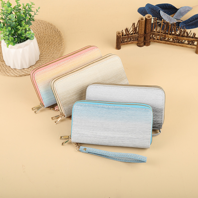 محفظة نسائية طويلة بألوان مدموجة بسحاب معدني ذهبي للنساء