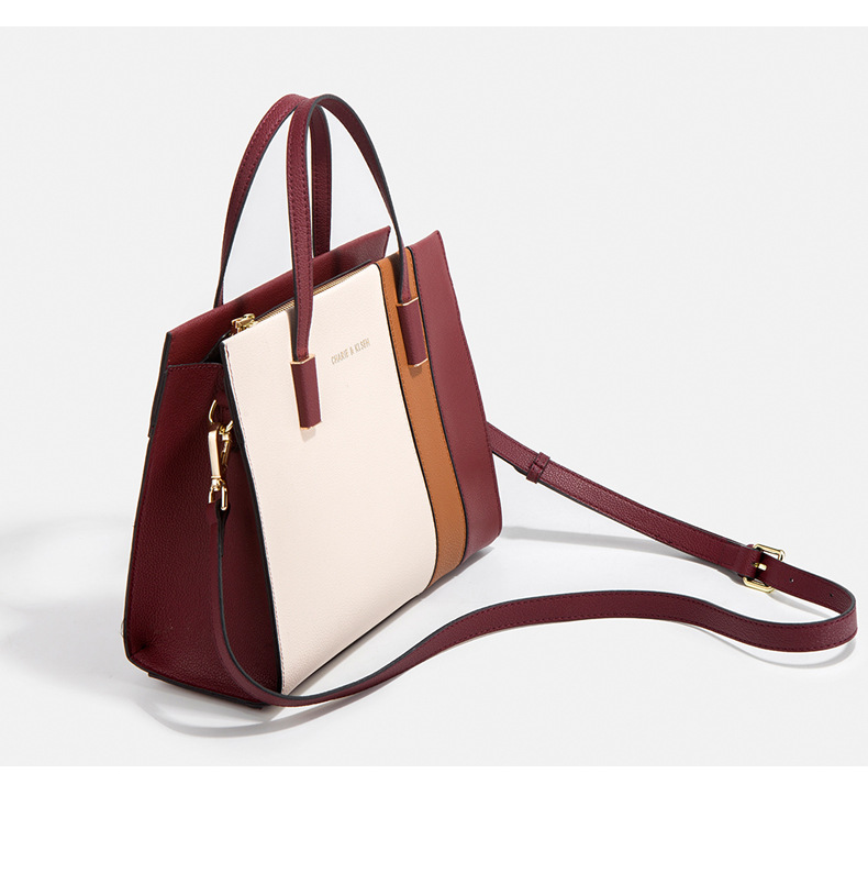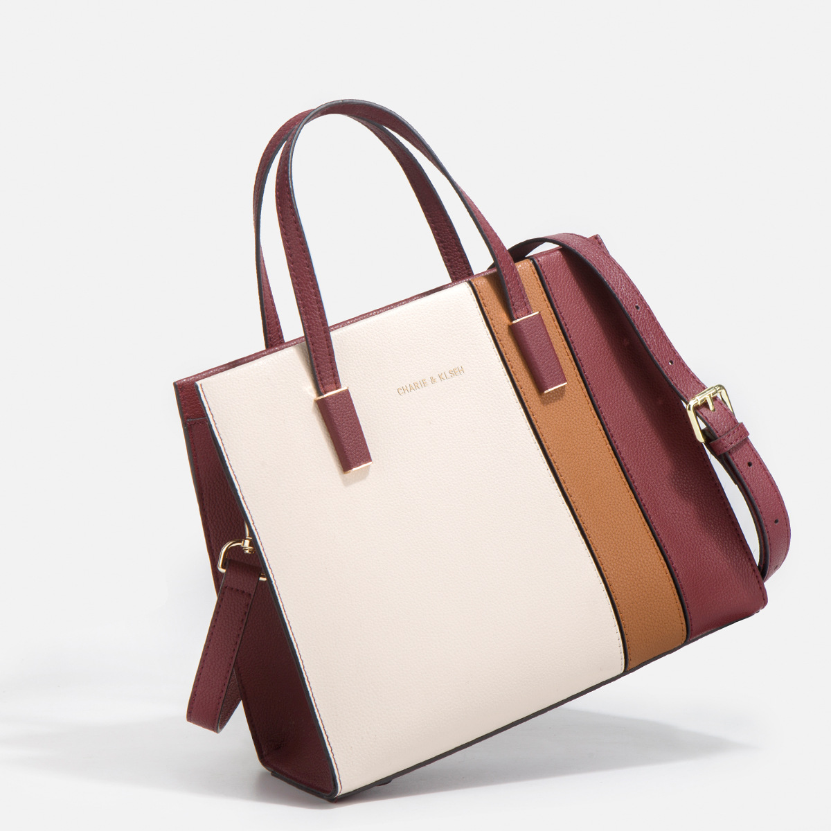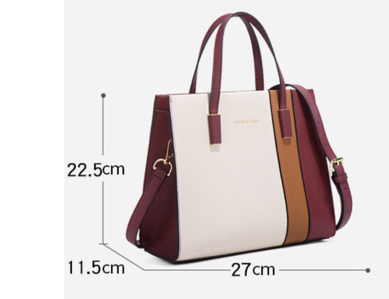 حقيبة مخططة سميكة وبسعة كبيرة من الجلد المتين للسيدات