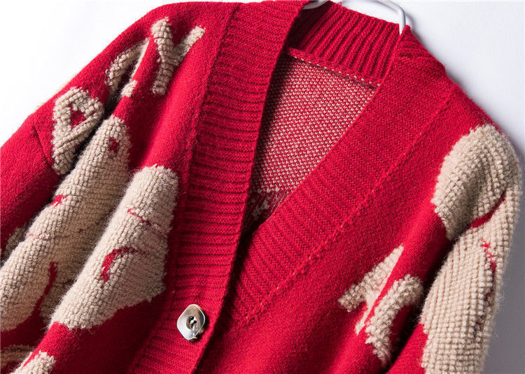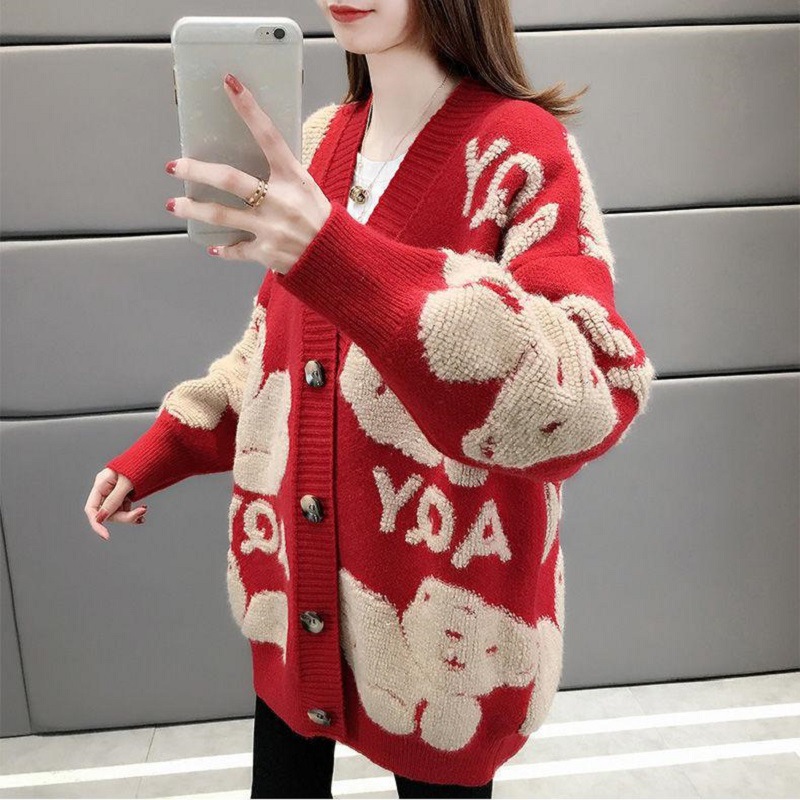 فنيلة شتوية بأكمام وأزرار بطبعات الدب الكرتوني للسيدات