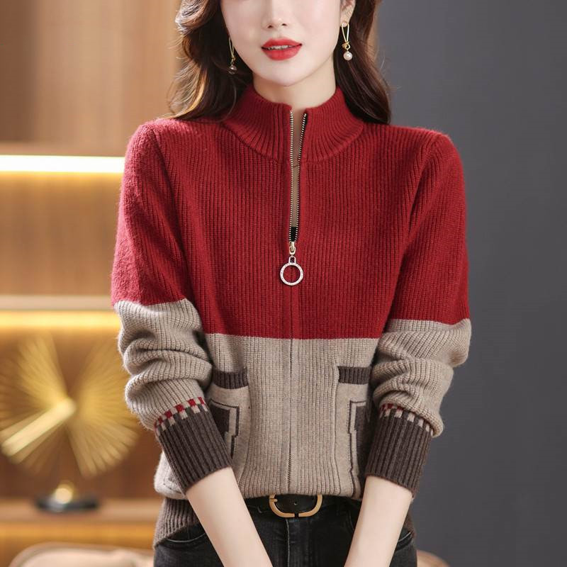 معطف مكمم بسحاب أمامي كاجوال عصري بألوان مبهجة للنساء