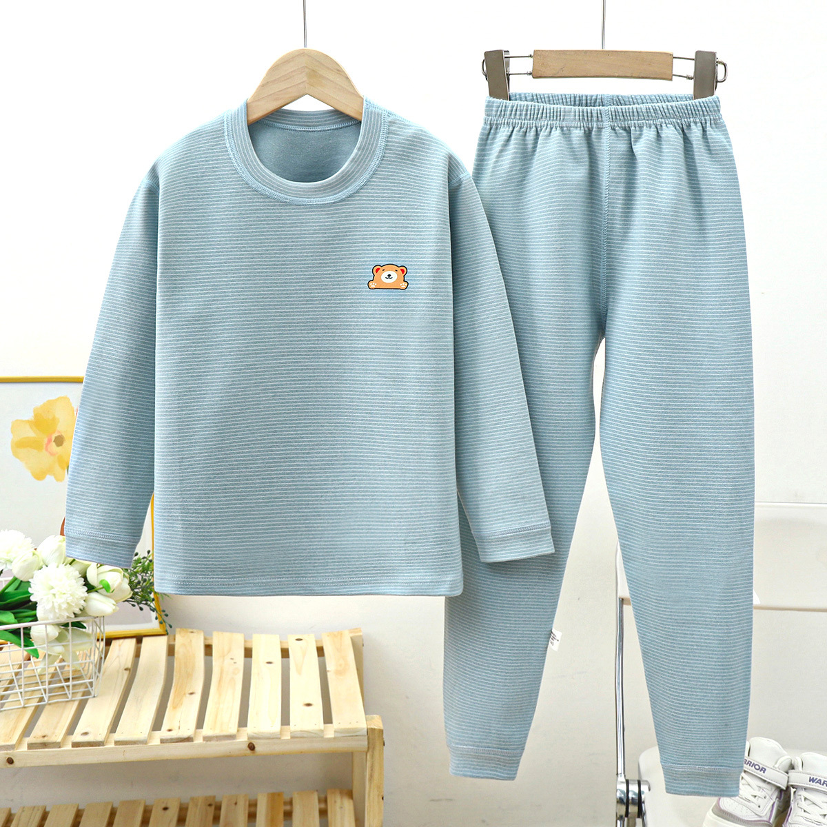 بيجامة شتوية بتصميم مريح ببلوزة بأكمام طويلة وبنطلون مطاطي مريح للأطفال