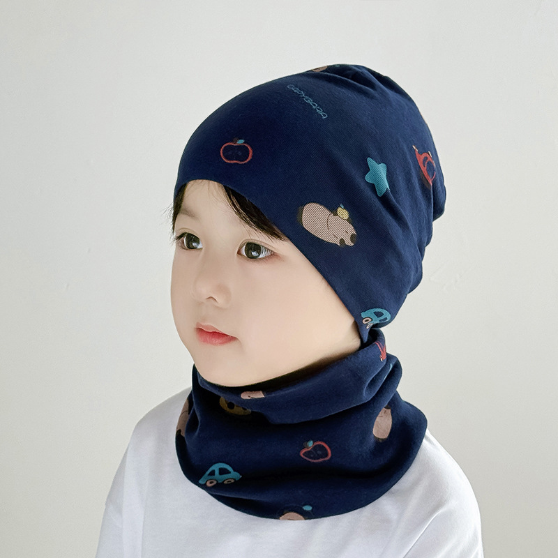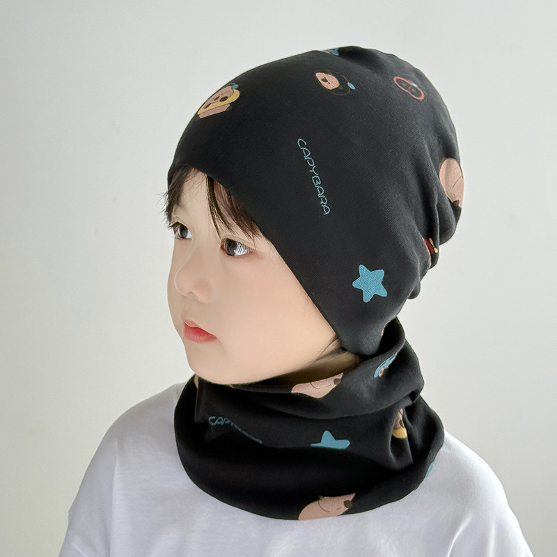 قبعة مع وشاح خريفي بنقشة كرتونية لطيفة للأطفال