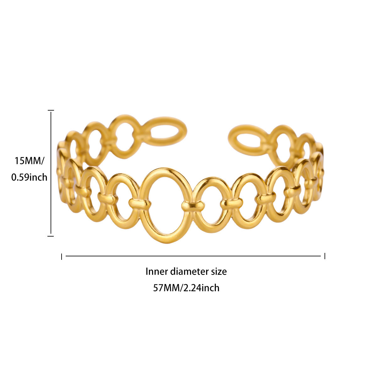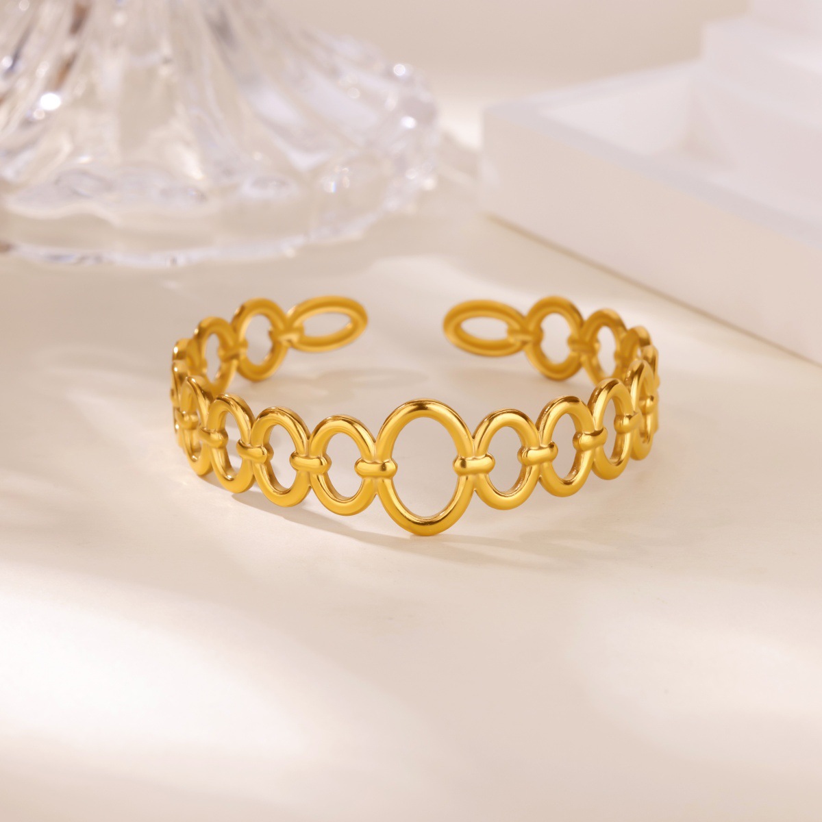 سوار مفتوح من الفولاذ المقاوم للصدأ مطلي بالذهب للسيدات