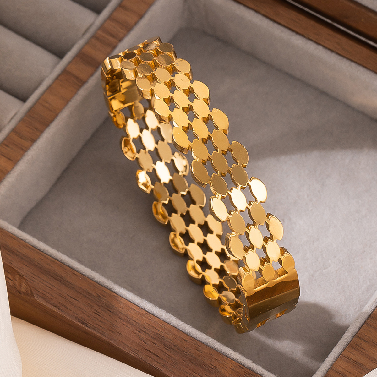 سوار دائري مجوف من فولاذ التيتانيوم المطلي بالذهب