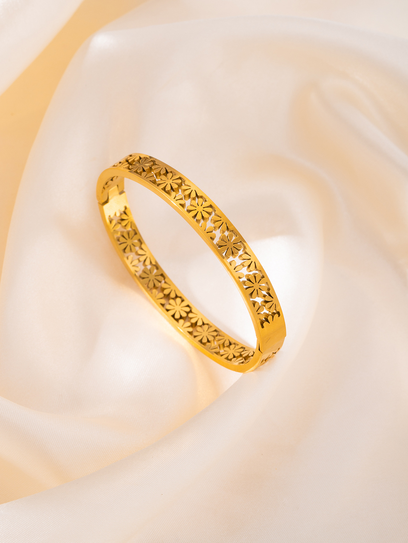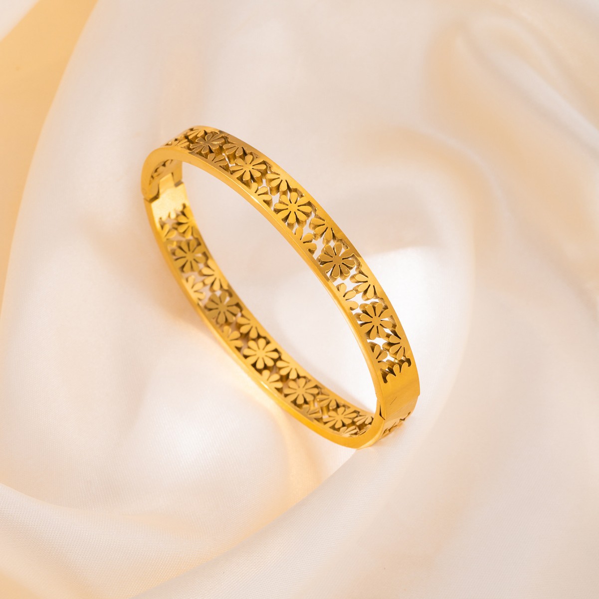 سوار بنقشة الزهور دائري متين من الفولاذ المقاوم للصدأ