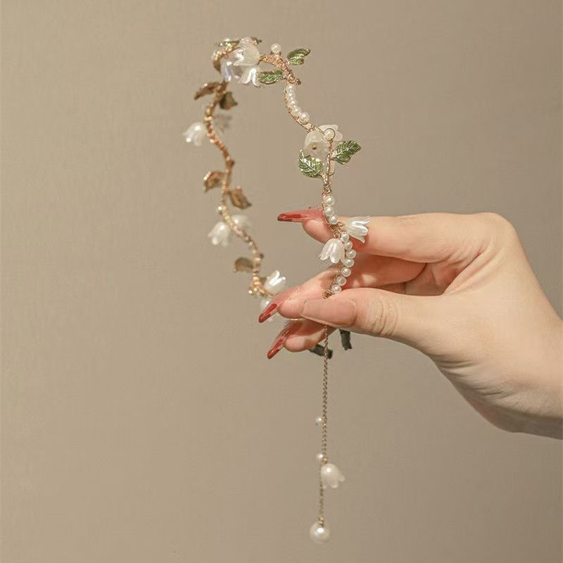 عصابة رأس من اللؤلؤ على شكل زهور من السبيكة للسيدات