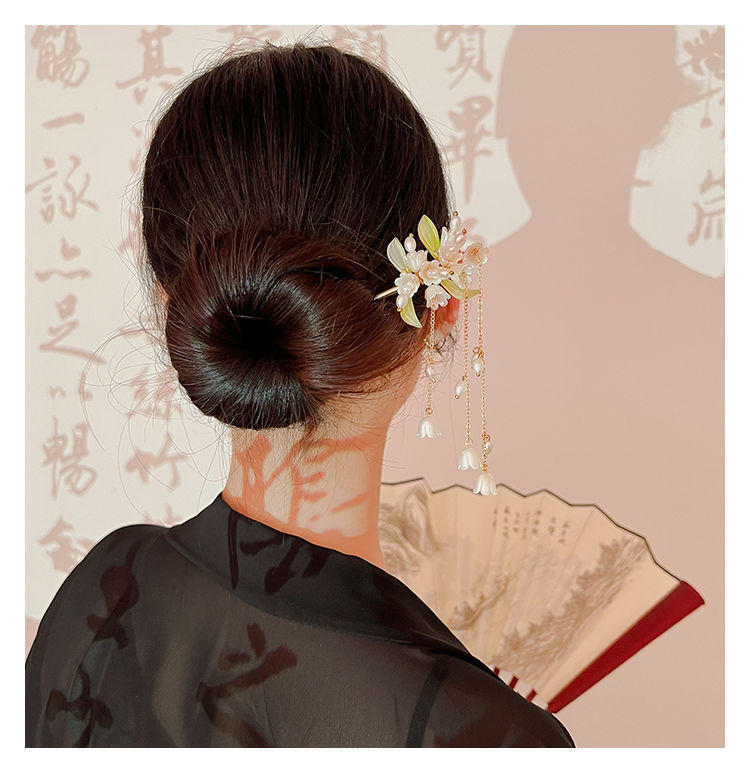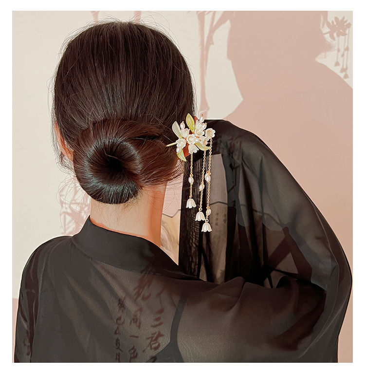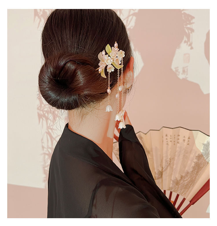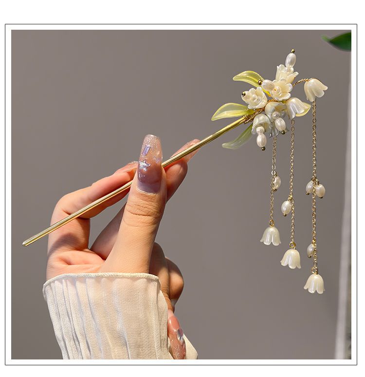 دبوس شعر على شكل زهرة الوادي المرتجفة من اللؤلؤ على الطراز القديم