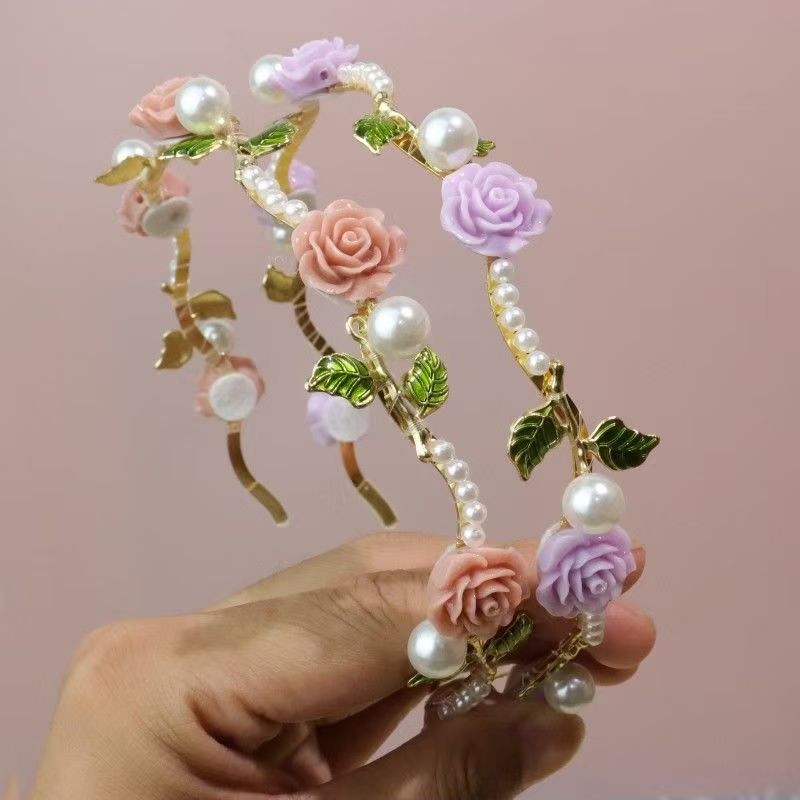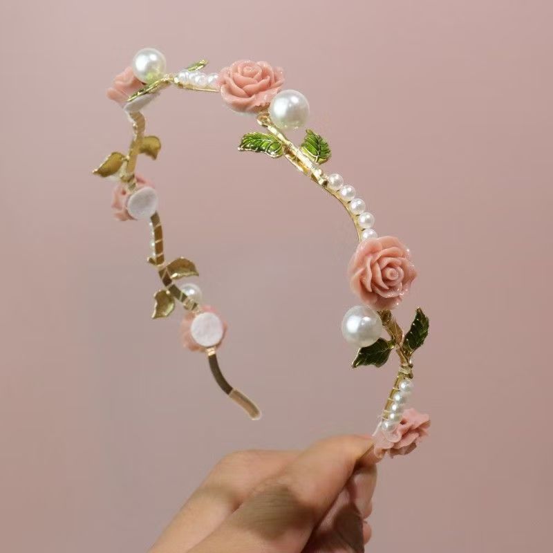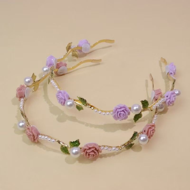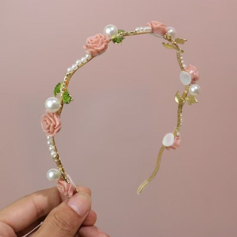 عصابة رأس من السبيكة المطرزة من اللؤلؤة والزهور المجففة للسيدات