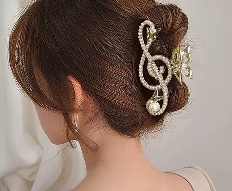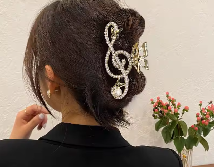 دبوس شعر من أحجار الراين بشكل الموسيقى