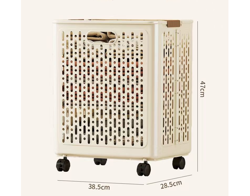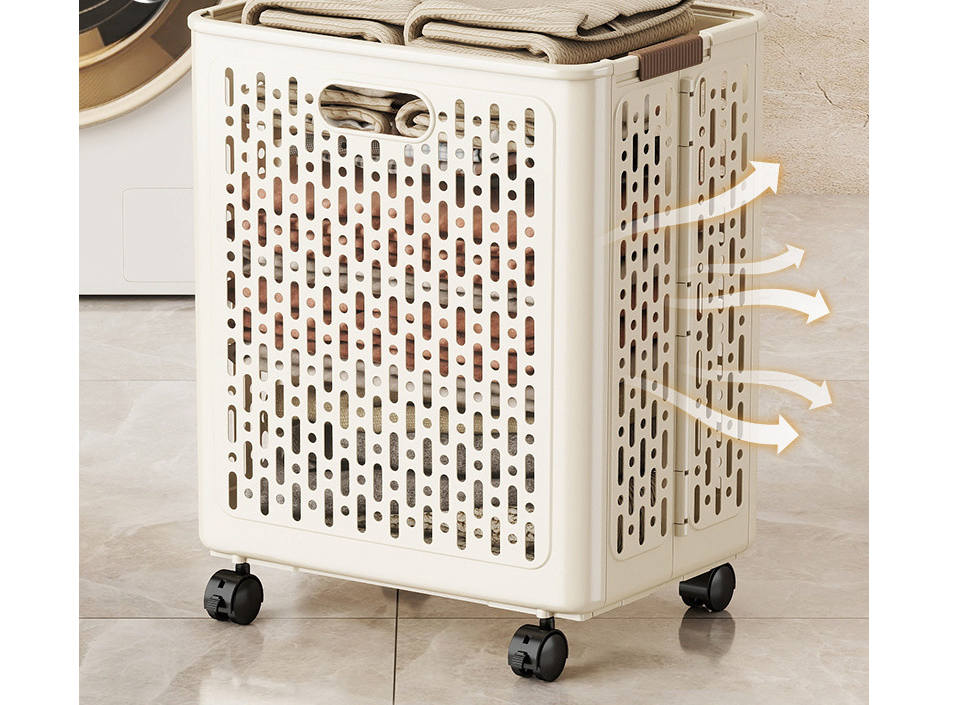 وصف | سلة ملابس متسخة قابلة للطي متعددة الوظائف - سلة تخزين للملابس المتسخة بعجلات - سلة تخزين بلاستيكية بسعة كبيرة |