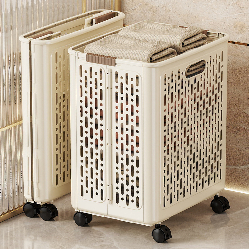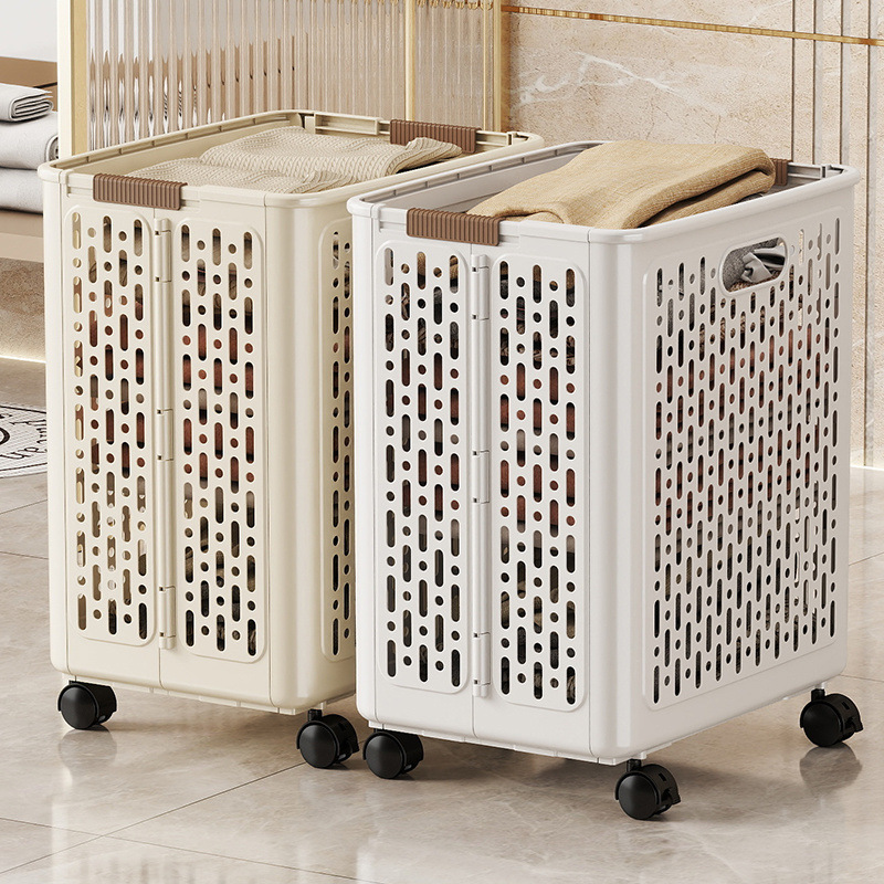 سلة متعددة الوظائف والإستخدامات بعجلات وقابلة للطي بسعة كبيرة ، سلة تخزين للحمام والمرحاض