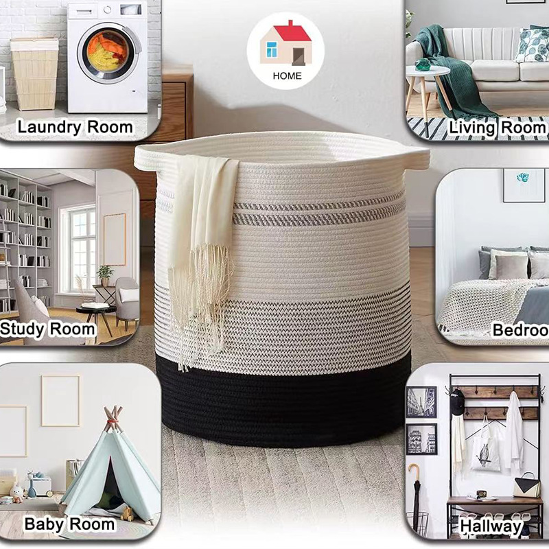 سلة تخزين منسوجة من حبل قطني مصنوع يدويًا