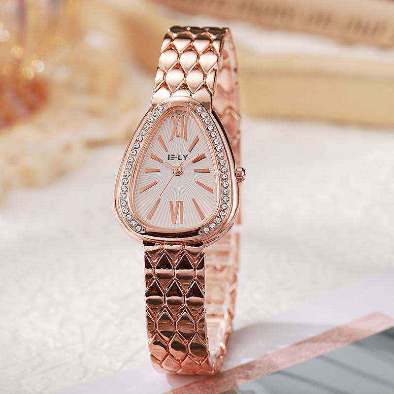ساعة برأس ثعبان أنيقة مع الماس و بحزام فضي فولاذي للسيدات