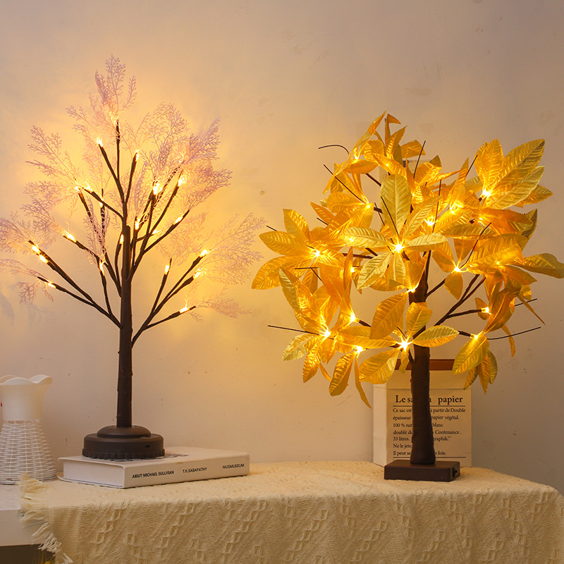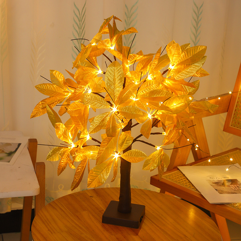 وصف | شجرة بعدة مصابيح بجهد داخلي 36 فولت - مصباح ديكوري بقاعدة بلاستيكية للتثبيت - مصباح للديكور بنمط أوراق الربيع - مصباح مزود بسلك يو اس بي و جهاز تحكم عن بعد |
