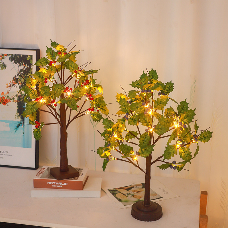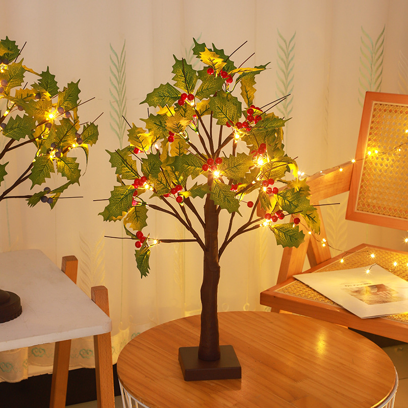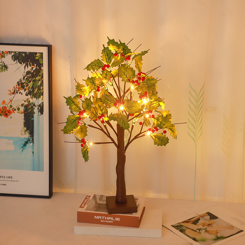 شجرة بإنارة فنية بقاعدة ثابتة وأوراق ملونة مثالية لغرف النوم