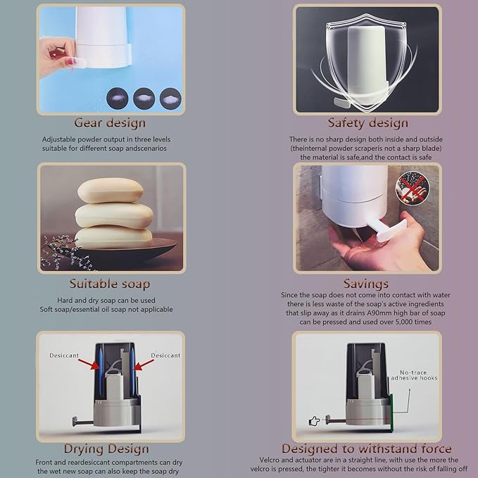 | وصف | صندوق صابون بغطاء وبدون ثقوب - مطحنة تقوم بتحويل قطع الصابون الكبيرة إلى مسحوق أو فتات صغيرة بسرعة ودقة - تصميم آمن: غالبًا تأتي مزودة بغطاء أمان أو نظام يمنع التشغيل أثناء الفتح |
