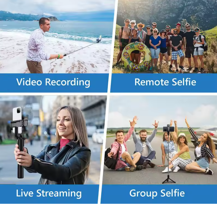 | وصف | عصا بجهاز تحكم عن بعد لاسلكي - يتضمن جهاز التحكم عن بعد - مع ضوء ملء - تتصل بسهولة مع الهواتف الذكية عبر تقنية البلوتوث - تحتوي على قاعدة ثلاثية توفر الاستقرار أثناء التصوير - |