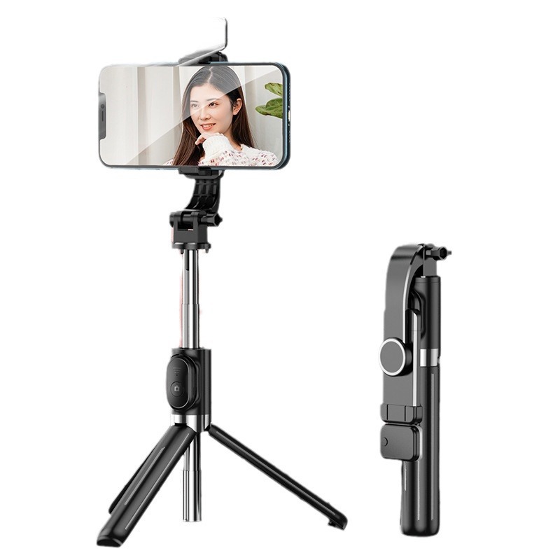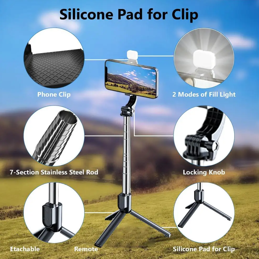 عصا سيلفي بلوتوث مزودة بإضاءة محمولة تلسكوبية