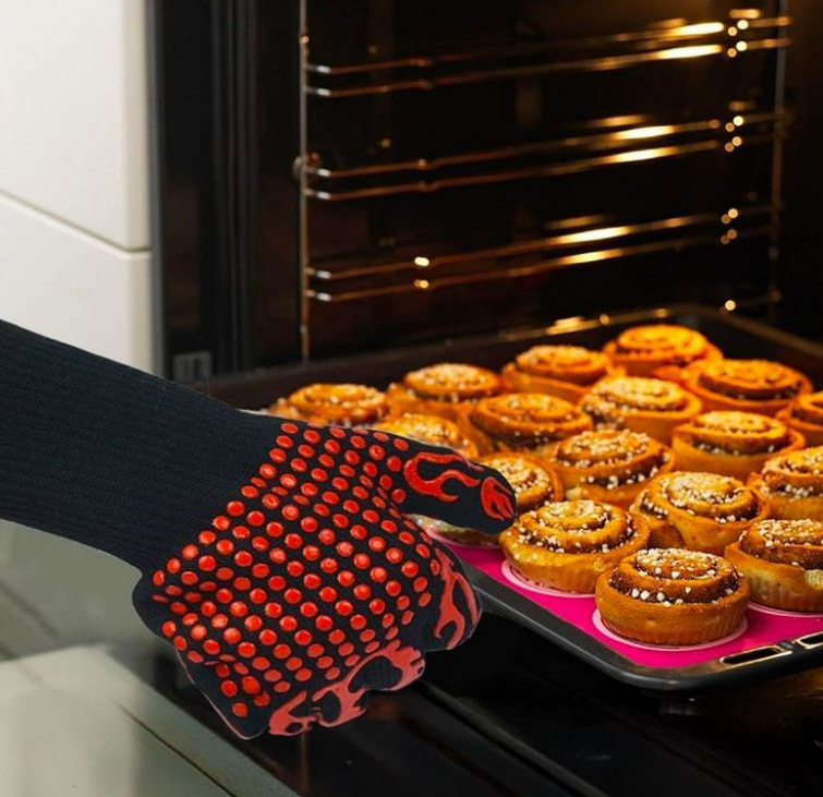 | وصف | توفر حماية من درجات الحرارة المرتفعة، مما يمنع حروق اليدين - مصنوعة من مواد مقاومة للحرارة، مما يجعلها مثالية للاستخدام في الشواء والطهي. - توفر قبضة قوية، مما يسهل التعامل مع الأواني والأدوات الساخنة - تصميم مرن يسمح بحرية الحركة أثناء الطهي |