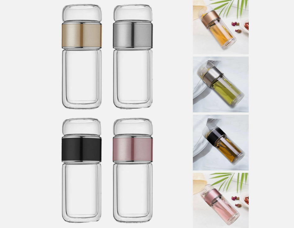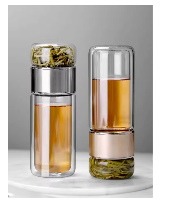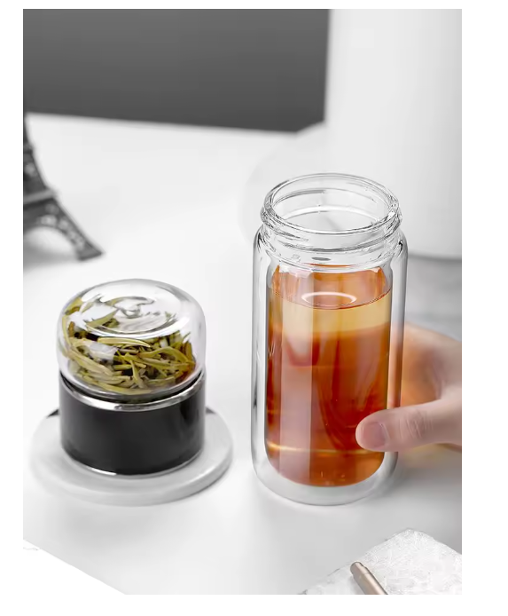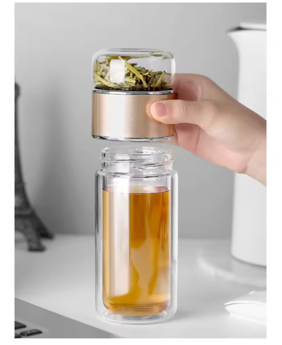 كوب زجاجي مزدوج الطبقات لتخمير الشاي 500 ملي