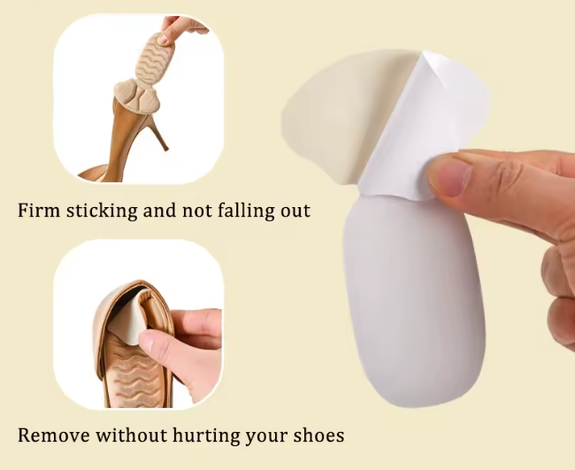 | وصف | وسادات مقدمة القدم هي وسائد مريحة توضع داخل الحذاء في منطقة مقدمة القدم لتخفيف الضغط والاحتكاك الناتج عن المشي أو ارتداء الأحذية الضيقة أو الكعب العالي. مصنوعة عادةً من سيليكون ناعم أو جل طبي، وتتميّز بأنها نصف حجم لتناسب معظم أنواع الأحذية |