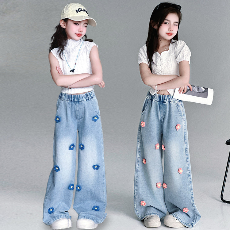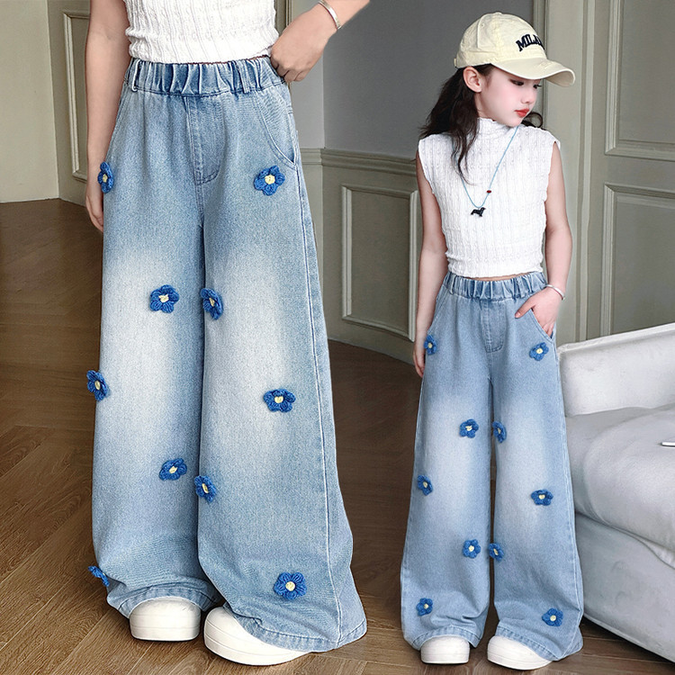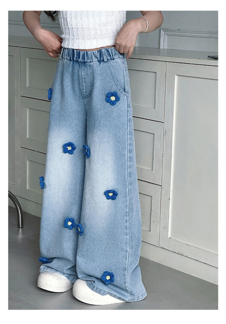 بنطلون جينز مطرز بالورد الصوفي للفتيات