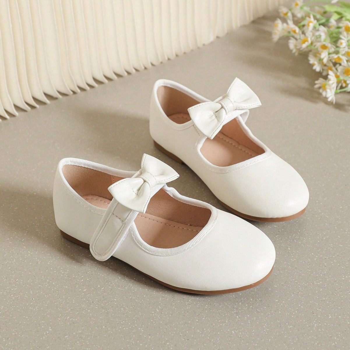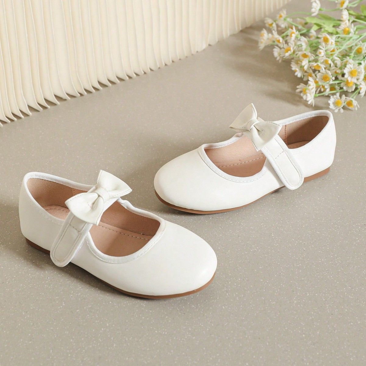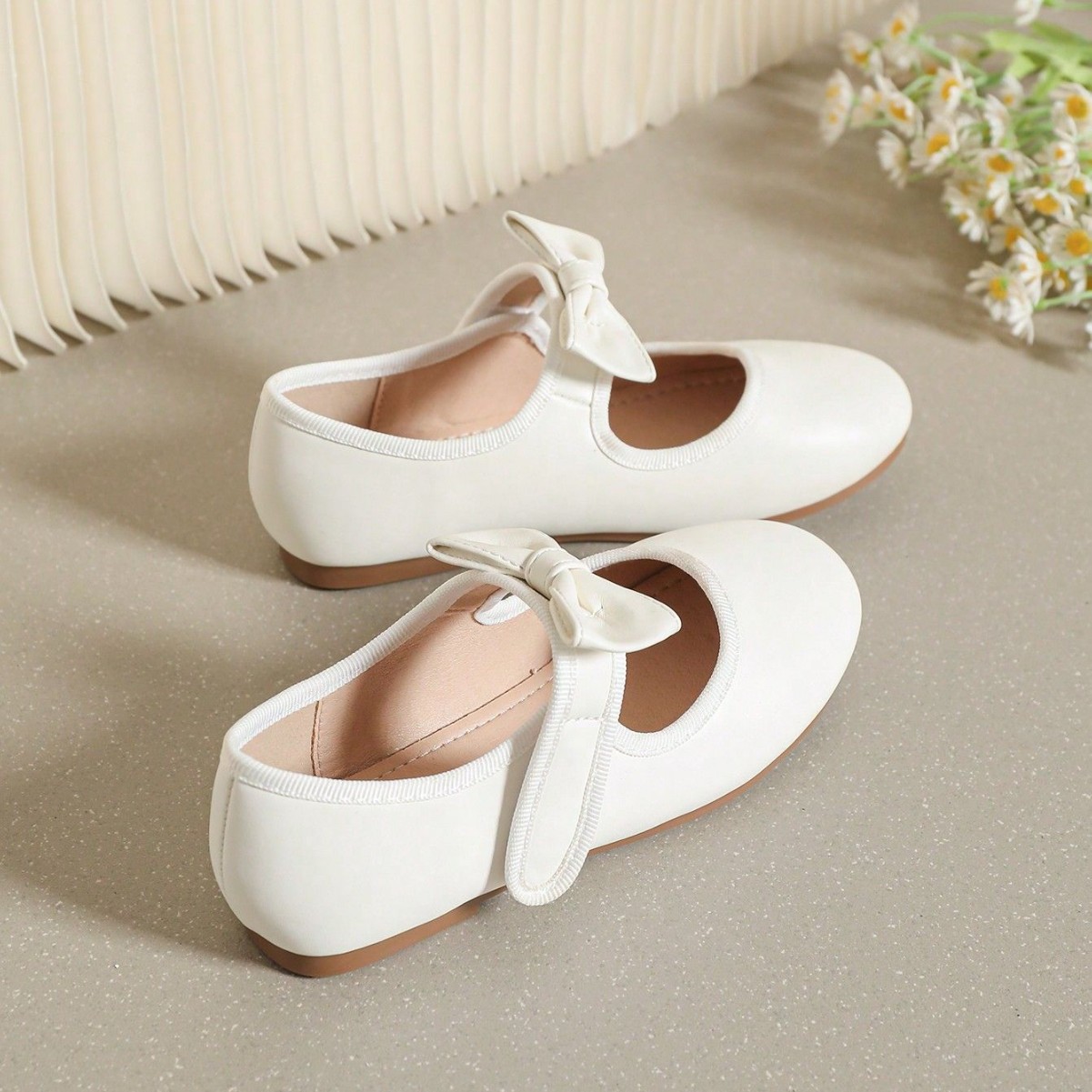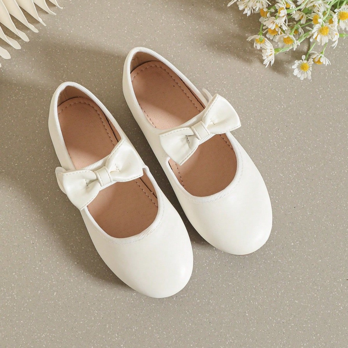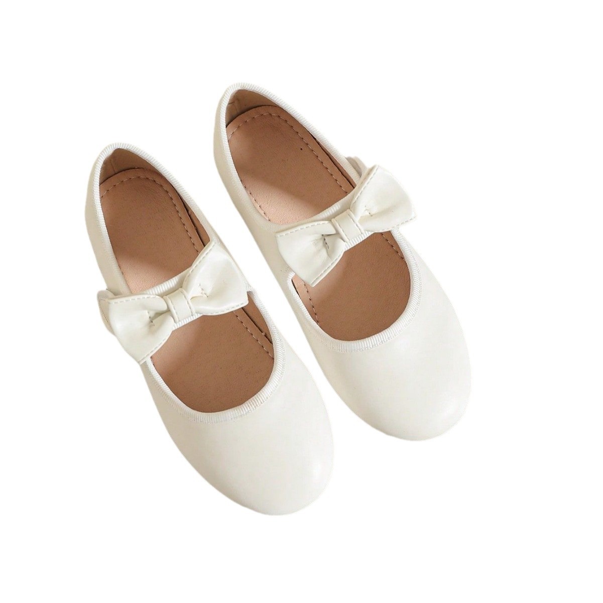 حذاء جلدي ابيض ذات نعل مسطح وناعم للفتيات