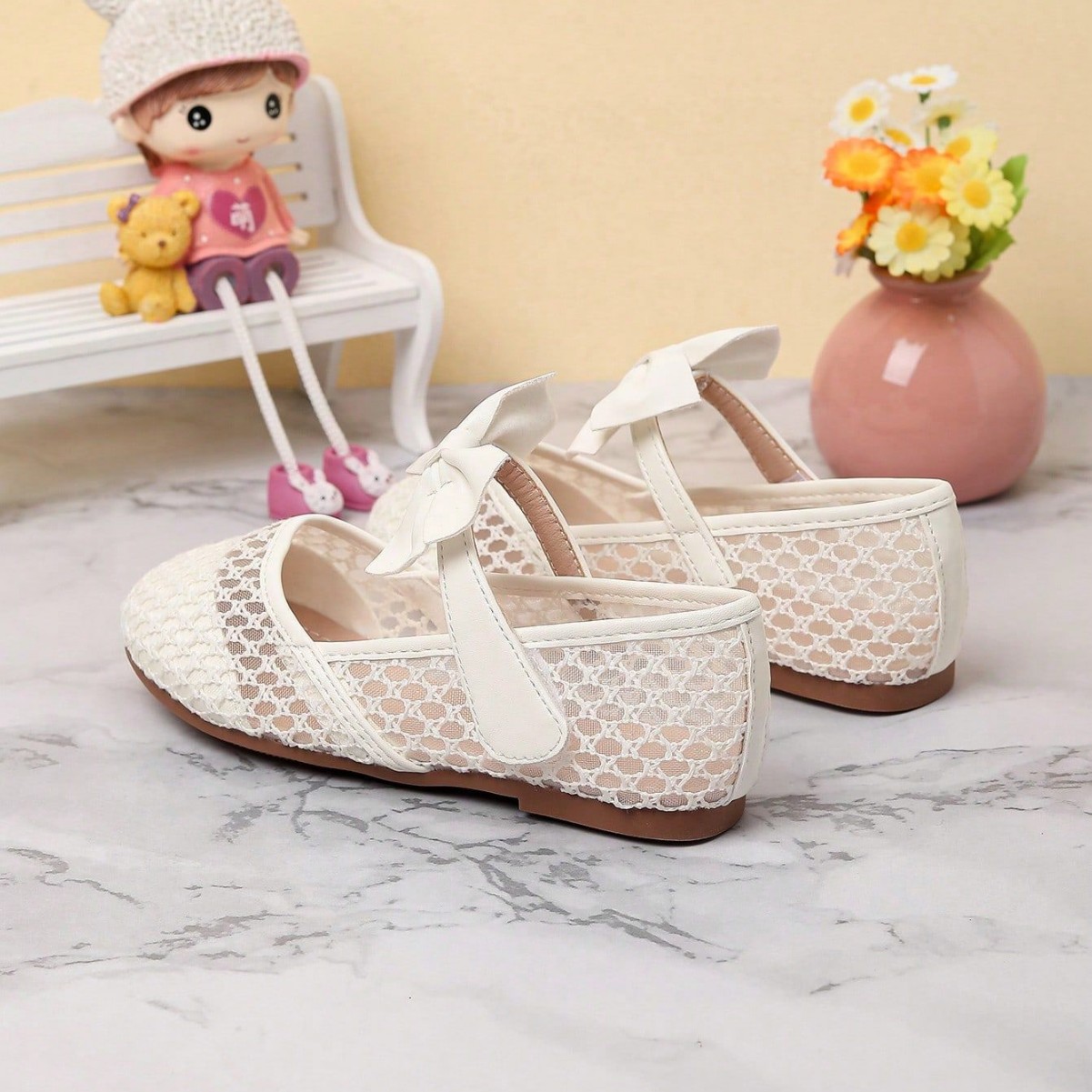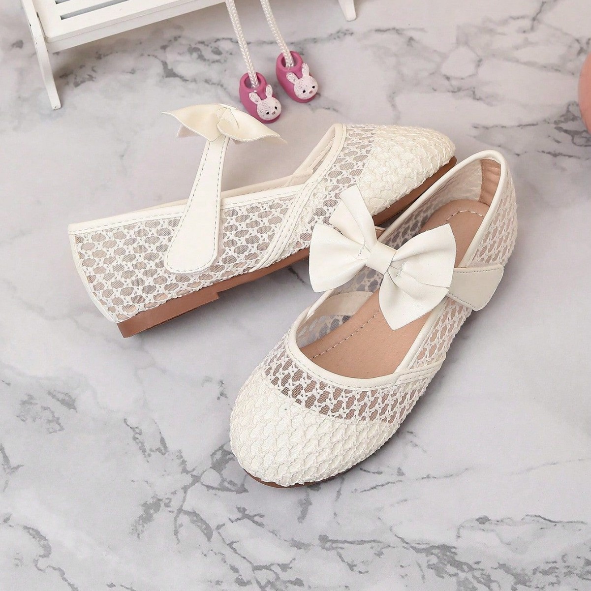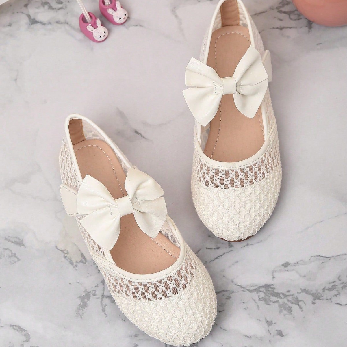حذاء شبكي بفيونكة ومقدمة مستديرة للفتيات